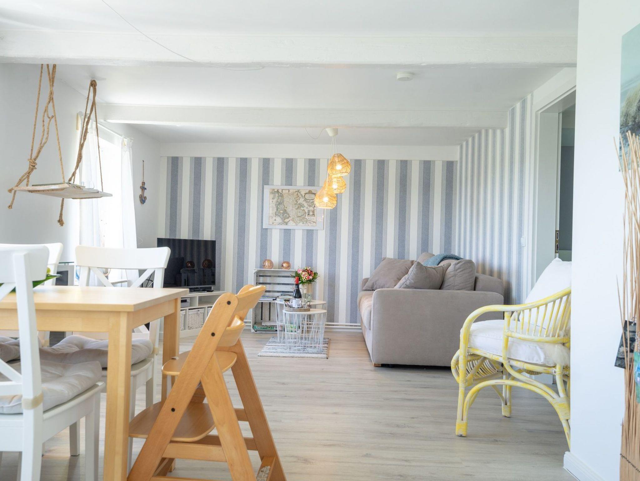Im separaten Schlafzimmer mit Doppelbett und Wickeltisch schlafen Sie ruhig und komfortabel. Die moderne Küche ist voll ausgestattet ? perfekt, um nach einem Tag am Deich ein gemeinsames Essen zu genießen. Ein Duschbad mit frischen Akzenten und die liebevolle Ausstattung runden das Wohlfühlambiente ab.