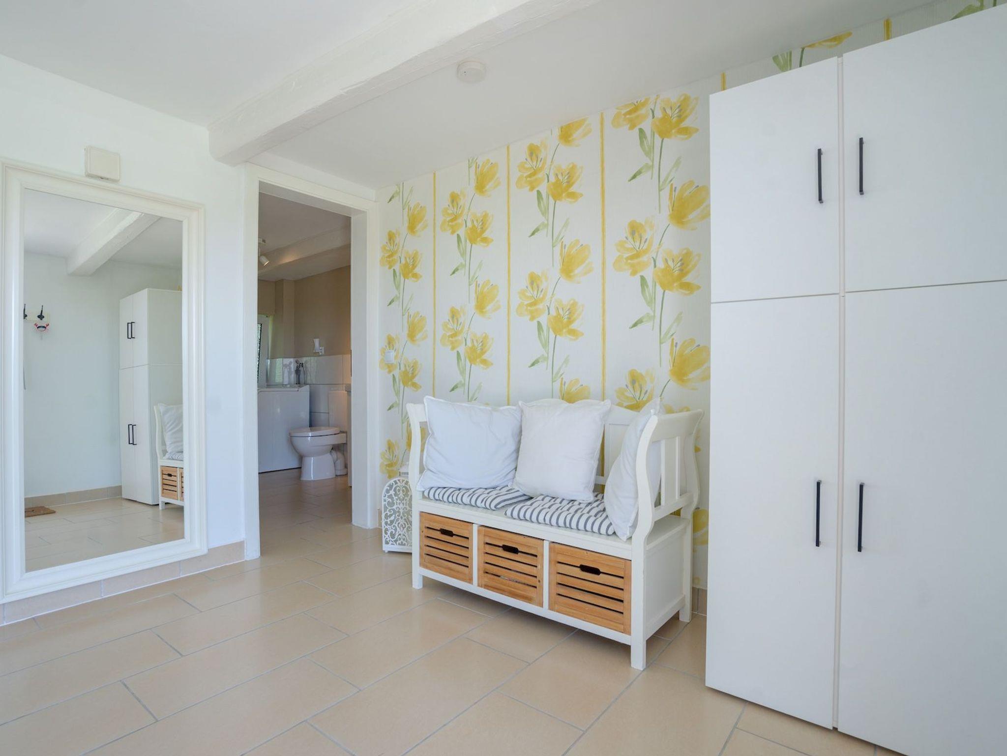 Ein behagliches Schlafzimmer mit Doppelbett, ein einladender Wohn- und Essbereich mit komfortablem Schlafsofa sowie ein zeitgemäß ausgestattetes Duschbad lassen keine Wünsche offen. Für Familien mit kleinen Kindern steht bei Bedarf ein Kinderbett und ein Wickeltisch bereit.