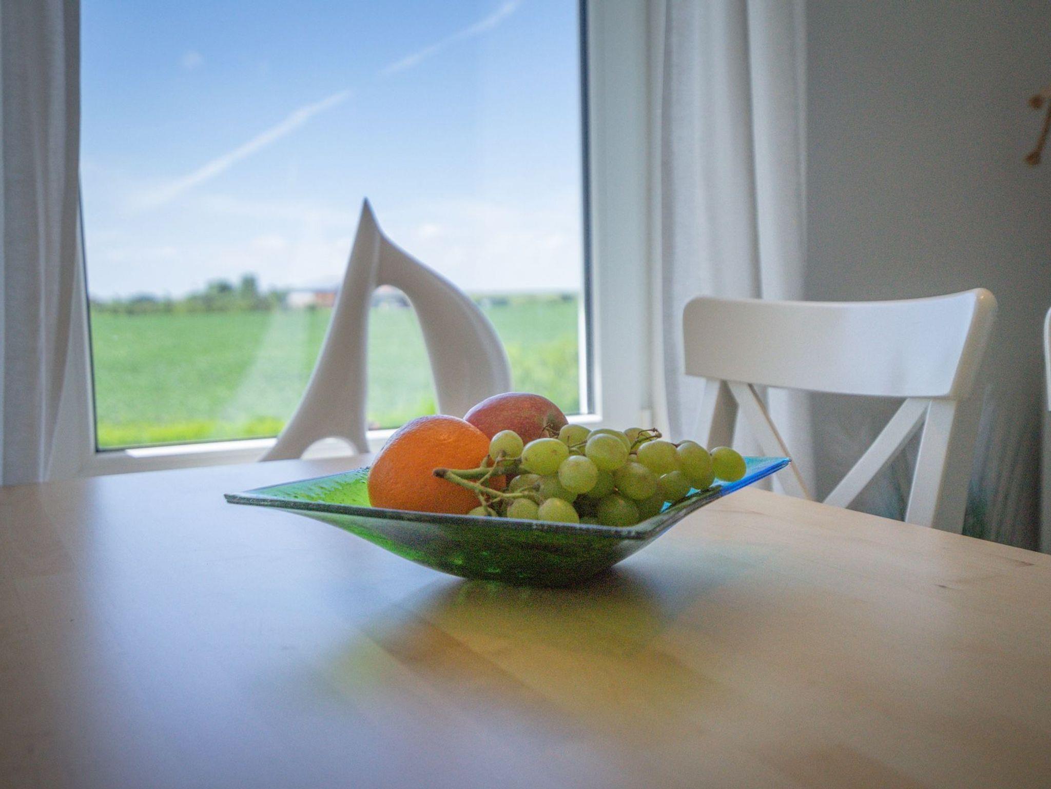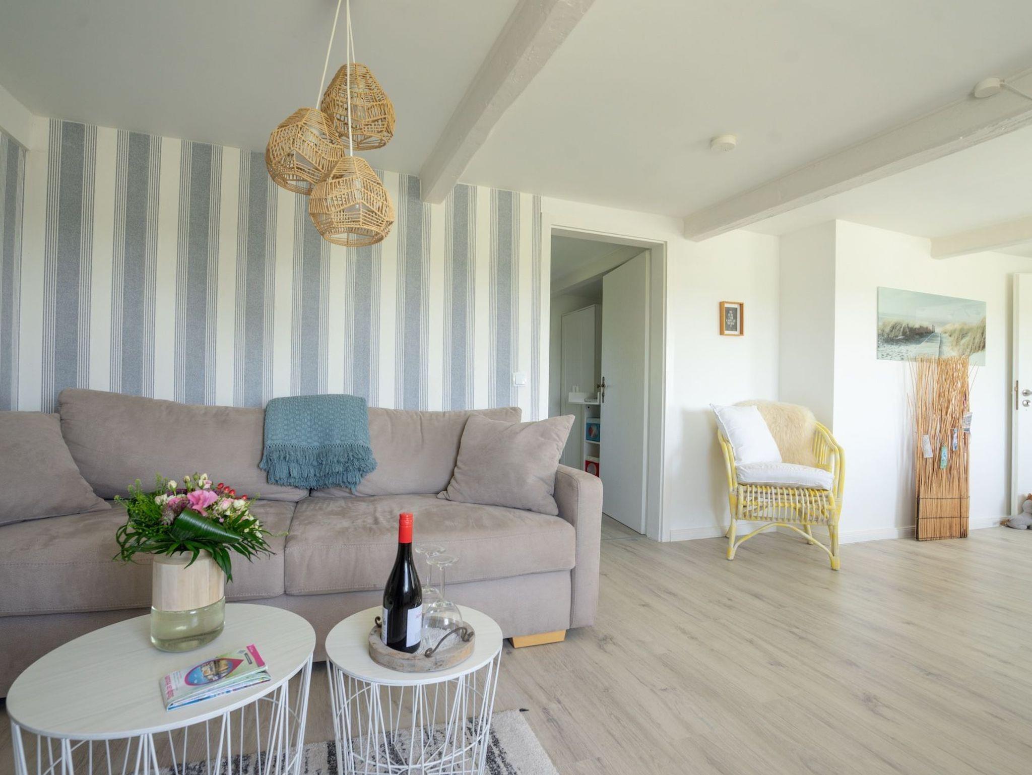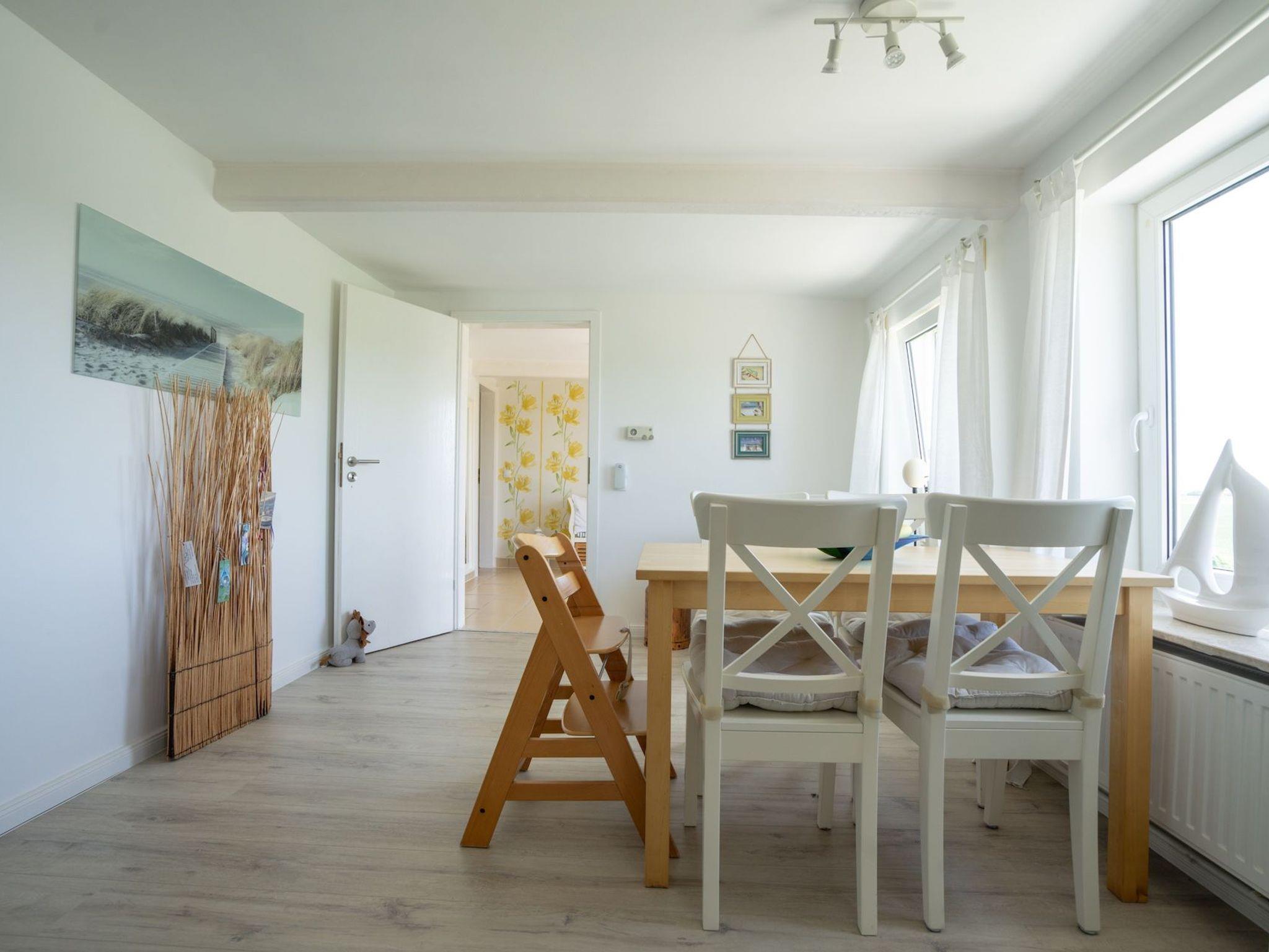 Die 62 qm große Ferienwohnung Grote Knutt empfängt Sie mit einem hellen, offenen Wohn- und Essbereich, der durch große Fenster und den Ausblick auf das Wattenmeer sofort Urlaubsstimmung verbreitet. Die bequeme Couch lässt sich bei Bedarf zu einem Schlafplatz für zwei weitere Gäste umwandeln.