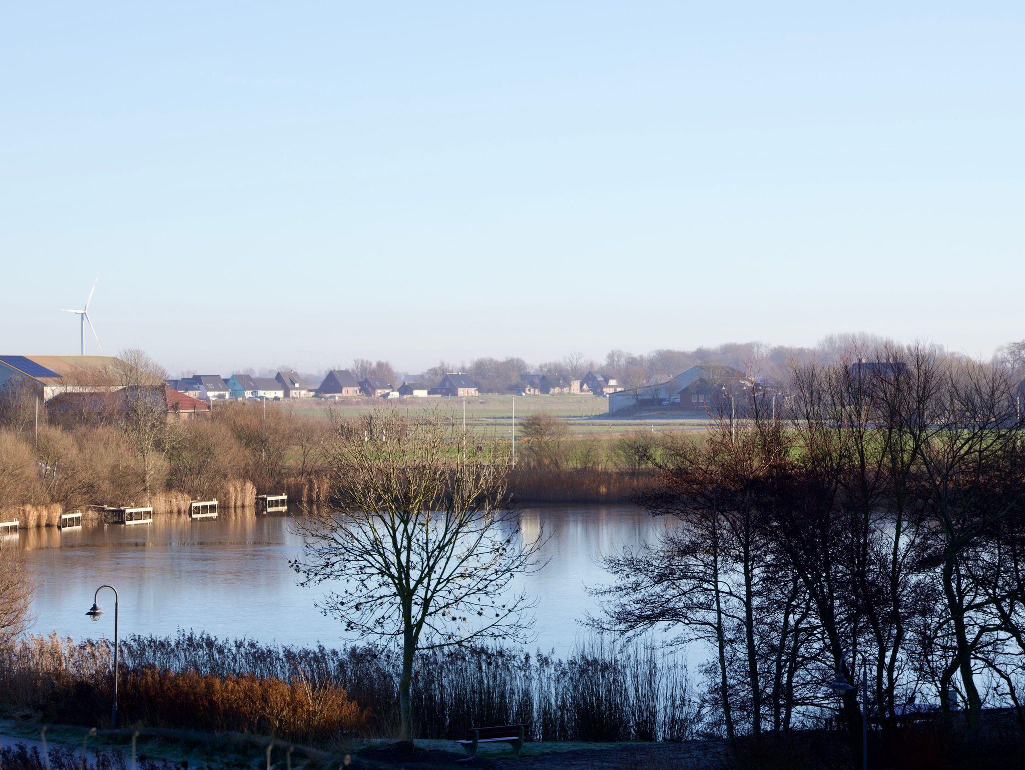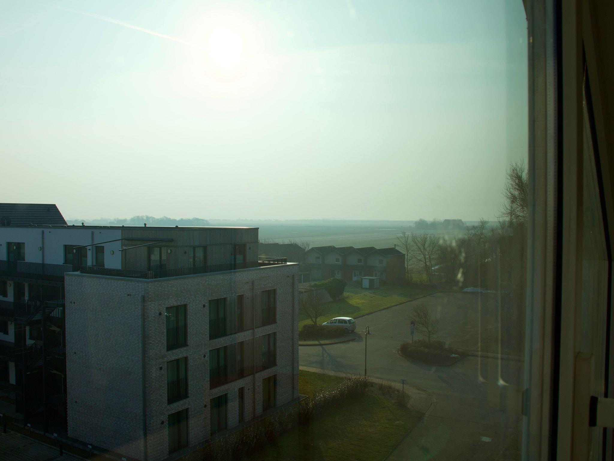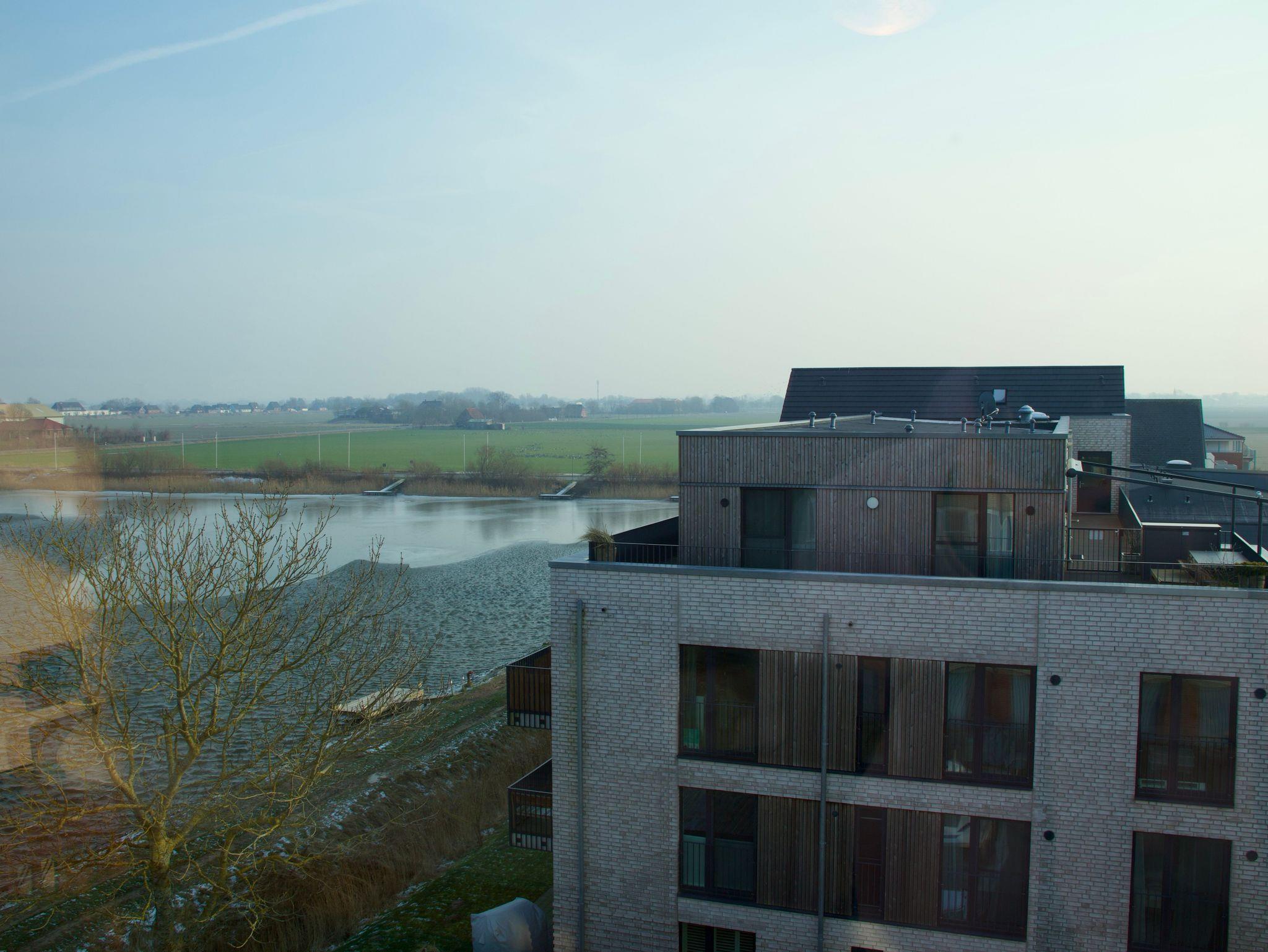 Das Appartement 63 liegt im vierten Stock des Hauses und ist stufenlos über einen Fahrstuhl erreichbar. Von hier aus eröffnet sich ein ruhiger Blick auf den Angelteich und den Deich, der die besondere Lage des Hauses widerspiegelt.