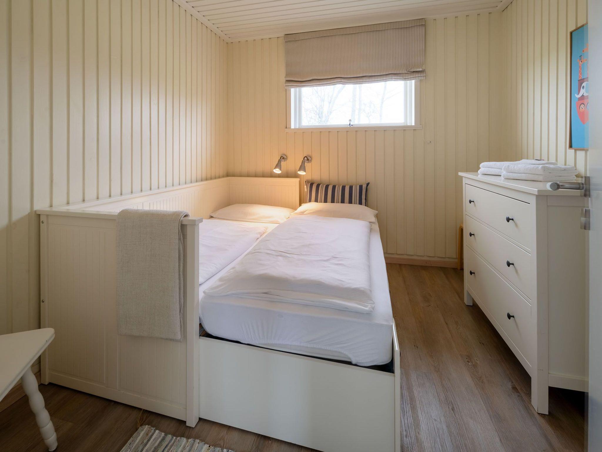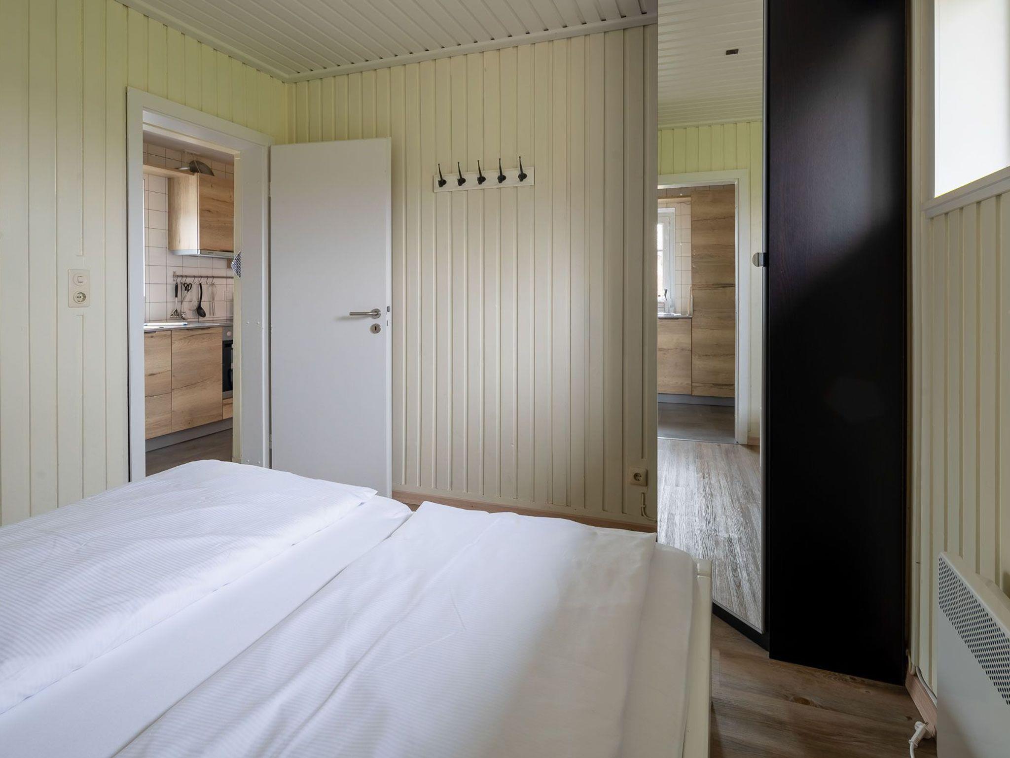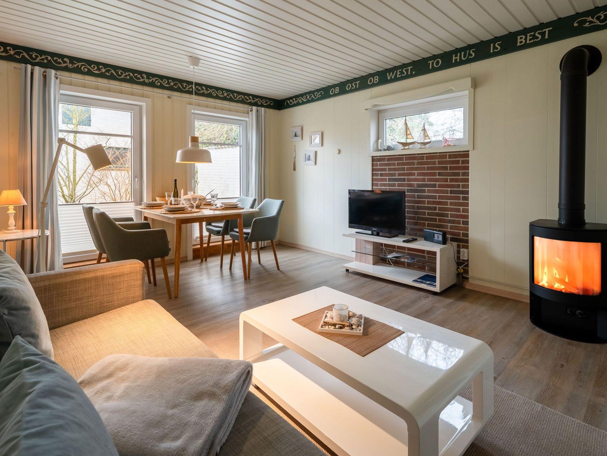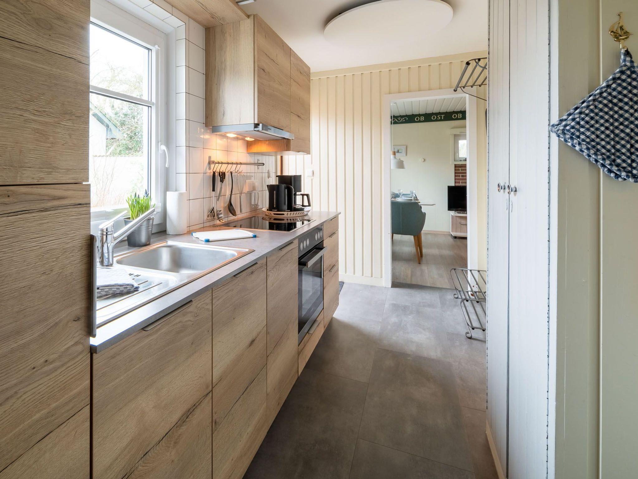 Erleben Sie einen erholsamen Urlaub in Haus Kai, einem eingeschossigen Ferienhaus für bis zu 4 Personen. Das Haus verfügt über ein Wohnzimmer, zwei Schlafzimmer, eine Küche und ein Duschbad. Ein Gaskaminofen im Wohnzimmer sorgt für wohlige Wärme. Die Einbauküche ist mit Herd/Ceranfeld, Backofen, Spülmaschine, Kaffeemaschine, Wasserkocher und Toaster ausgestattet.