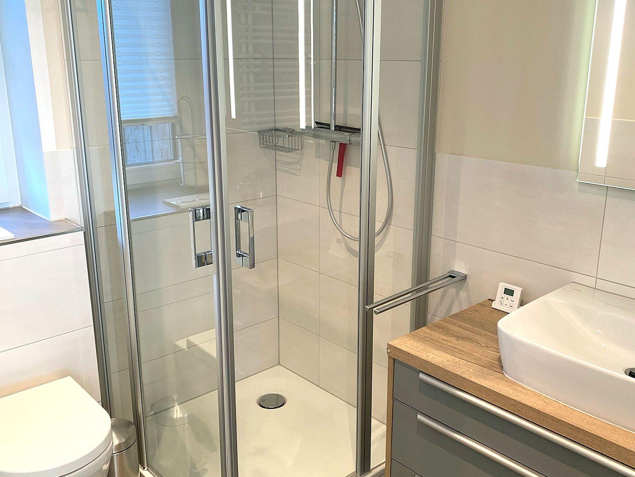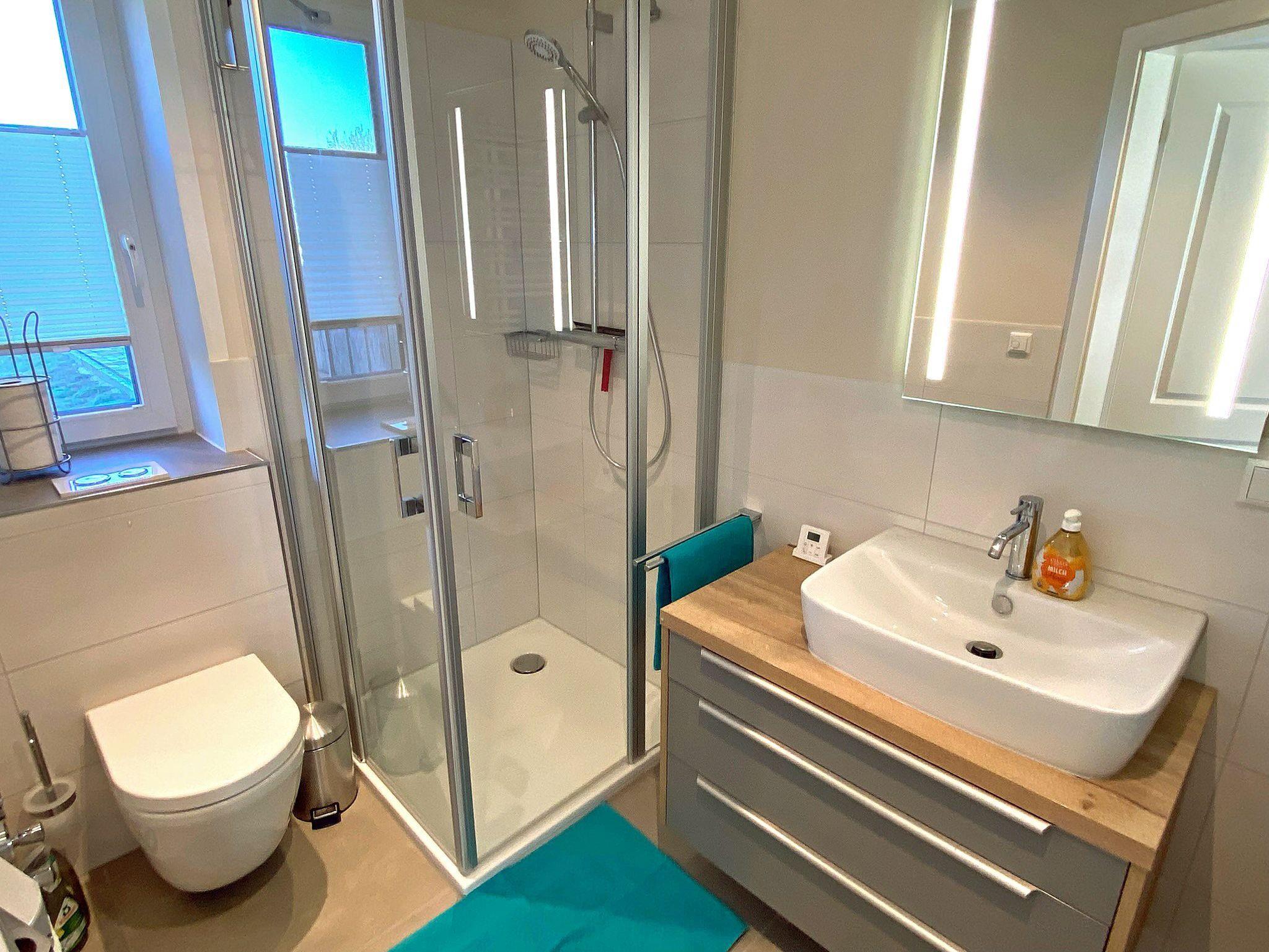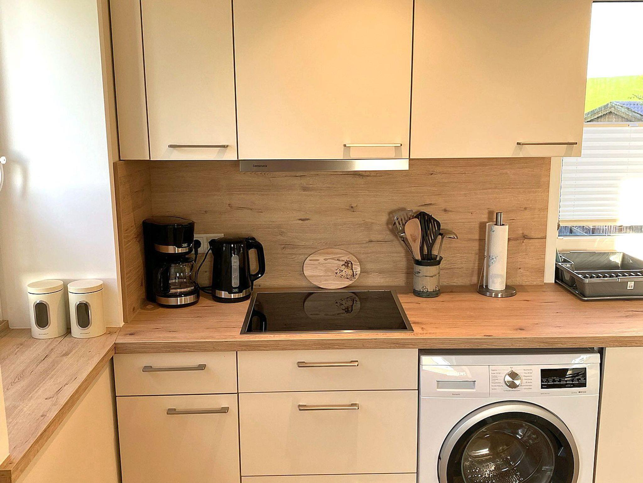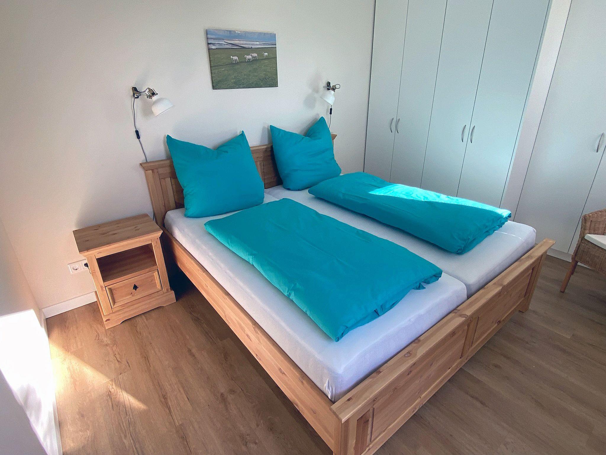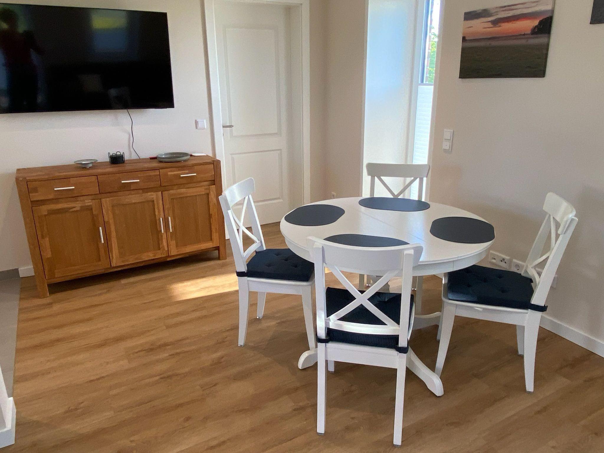 Ebenerdig gelegen besteht die Wohnung aus einem Schlafzimmer mit Doppelbett (180cm x 200cm) und einer voll ausgestatteten, hochwertigen Wohnküche, inkl. Geschirrspüler und Waschmaschine, Esstisch, Schlafcouch und Smart-TV. Das moderne Bad bietet eine Dusche mit niedrigem Einstieg.