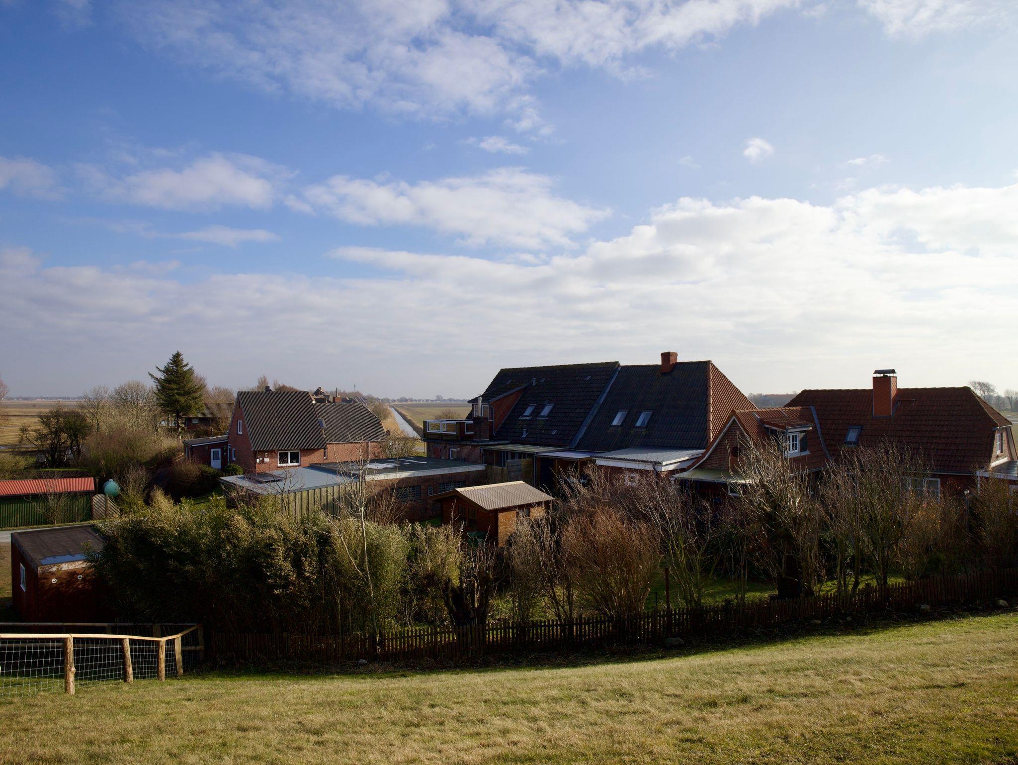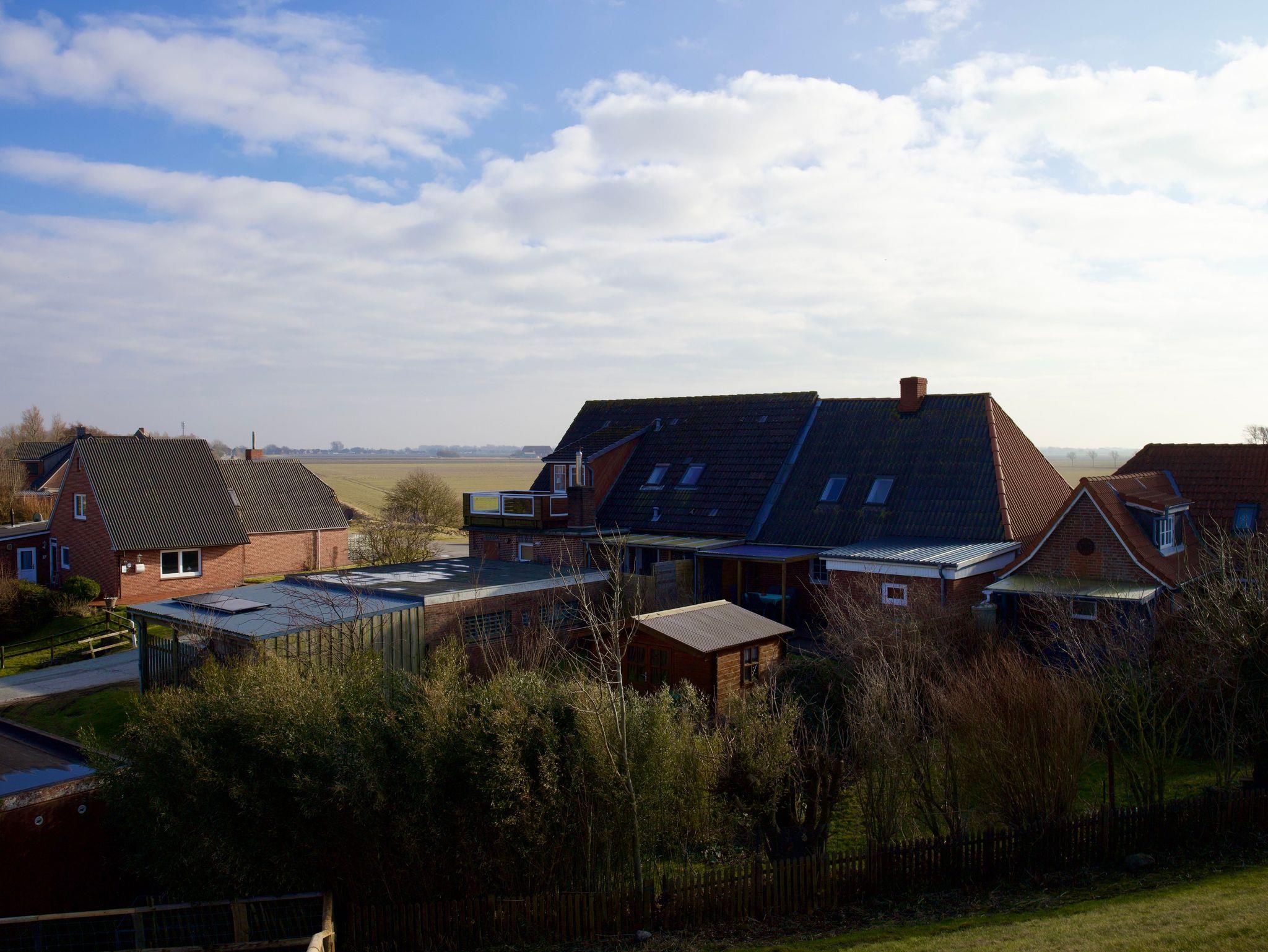 Gemütliches Haus am Deich mit freiem Blick auf Nordstrands Landschaft und direktem Zugang zur Nordsee.