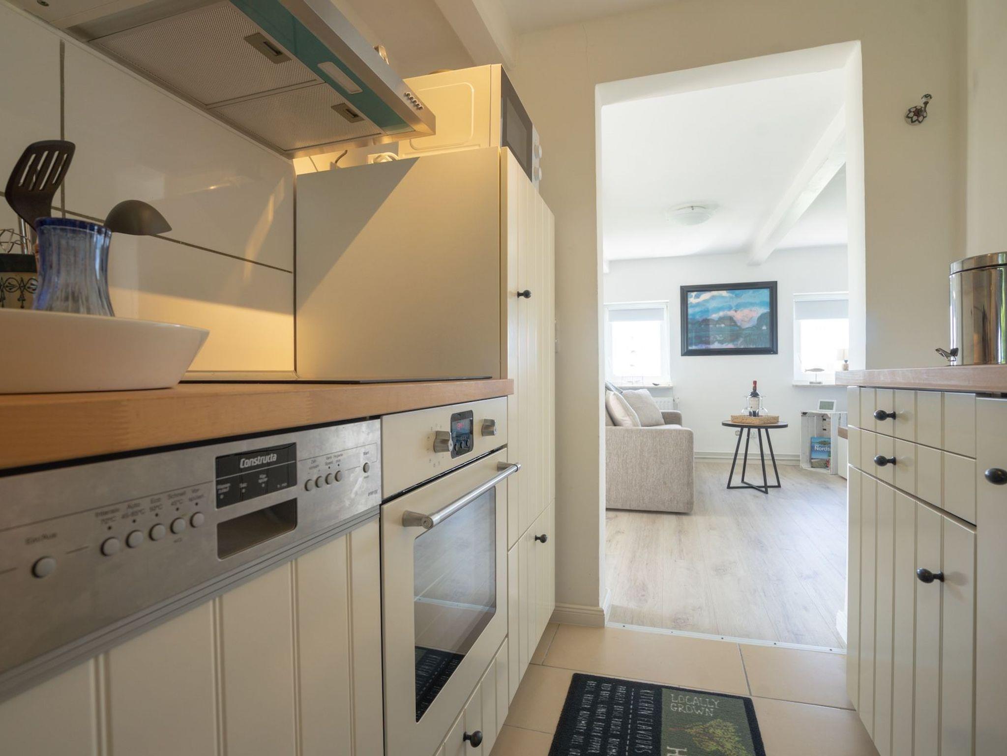 In der separaten Küche bereiten Sie mühelos Frühstück oder ein leichtes Abendessen zu. Ein modernes Duschbad sorgt für frische Momente nach einem Tag an der Nordsee. Vor der Haustür wartet Ihre eigene Terrasse perfekt für Sonnenstunden und ein Glas Wein am Abend.