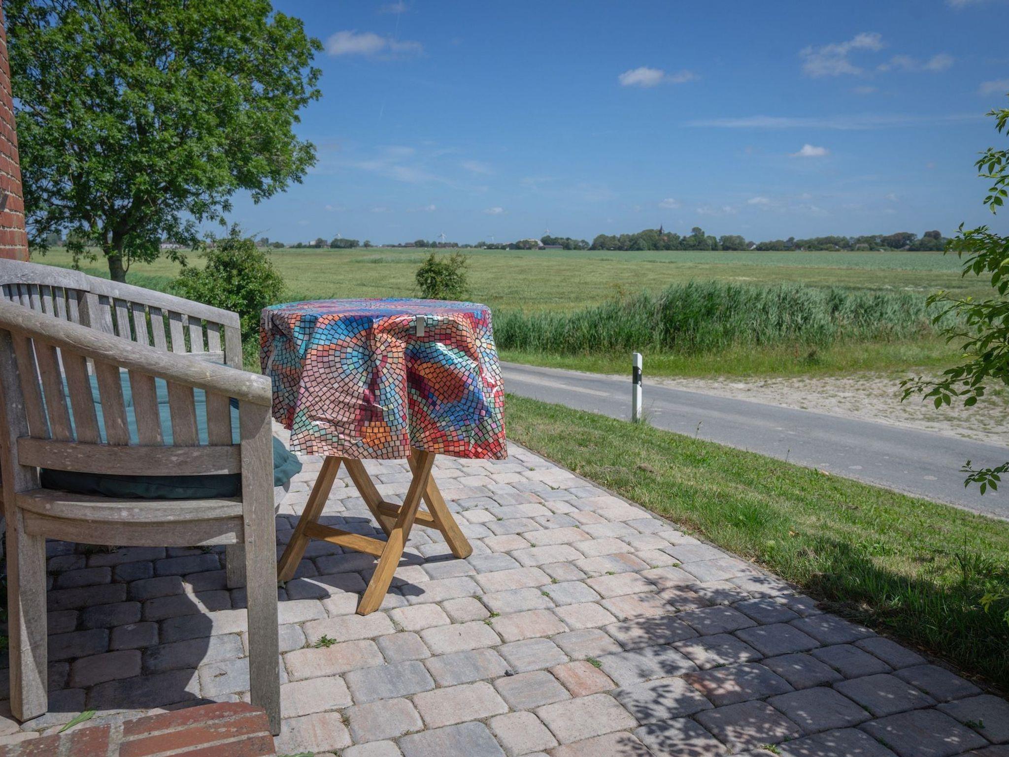 Genießen Sie Ihren Kaffee am Morgen auf der eigenen kleinen Terrasse vor der Haustür und lassen Sie den Blick über Marschen, Wiesen und den weiten Horizont schweifen Ihr persönlicher Logenplatz an der Nordseeküste.