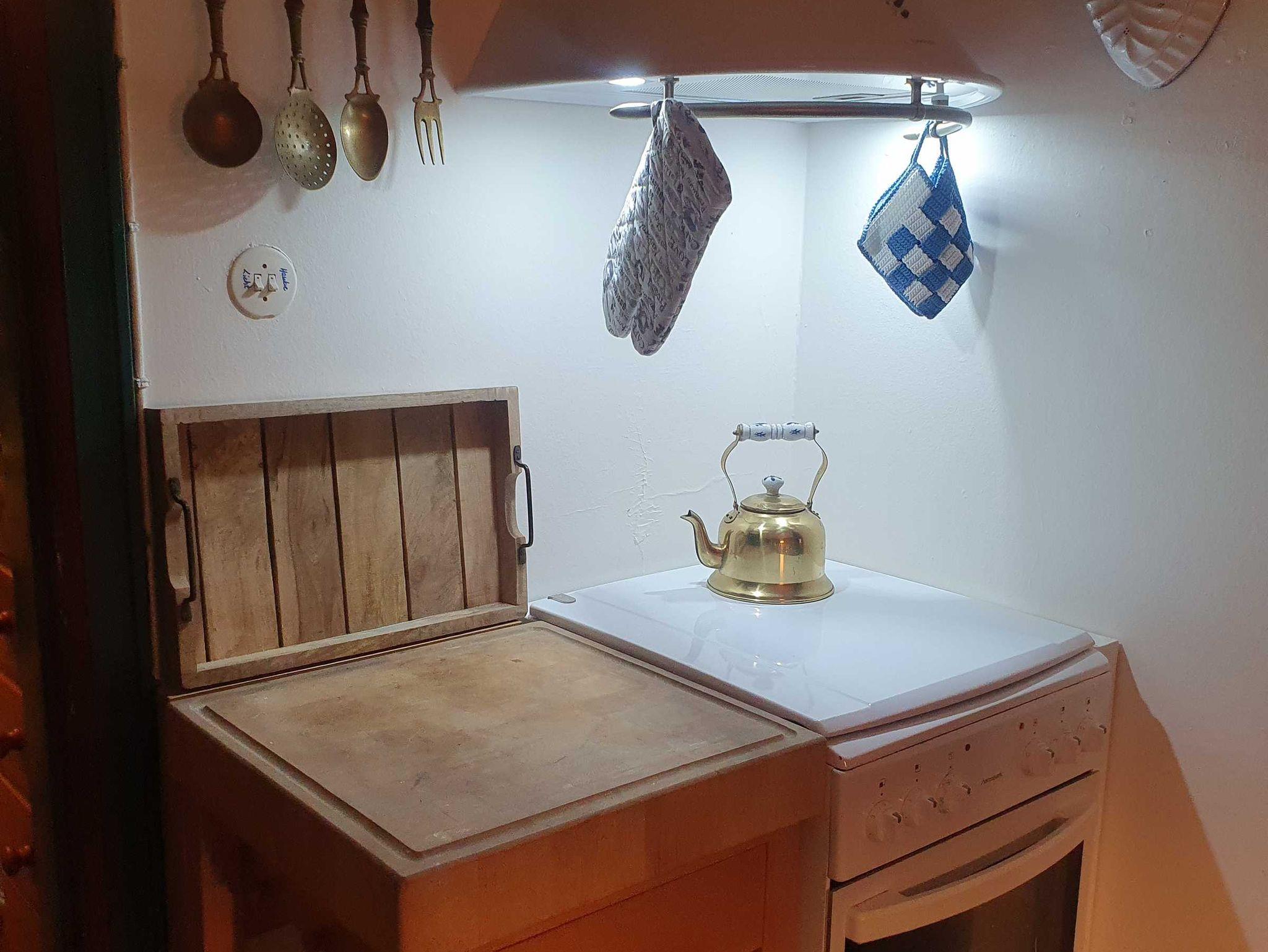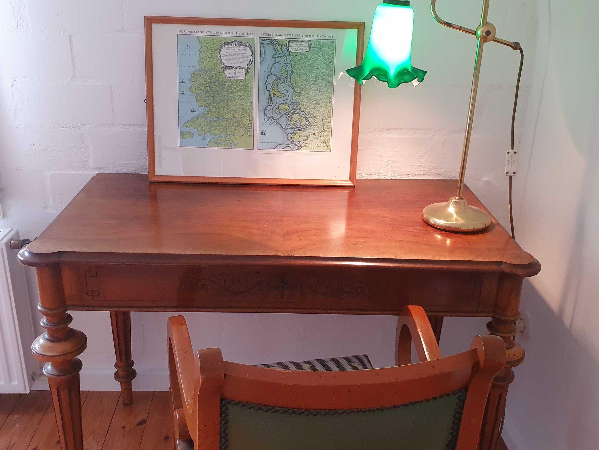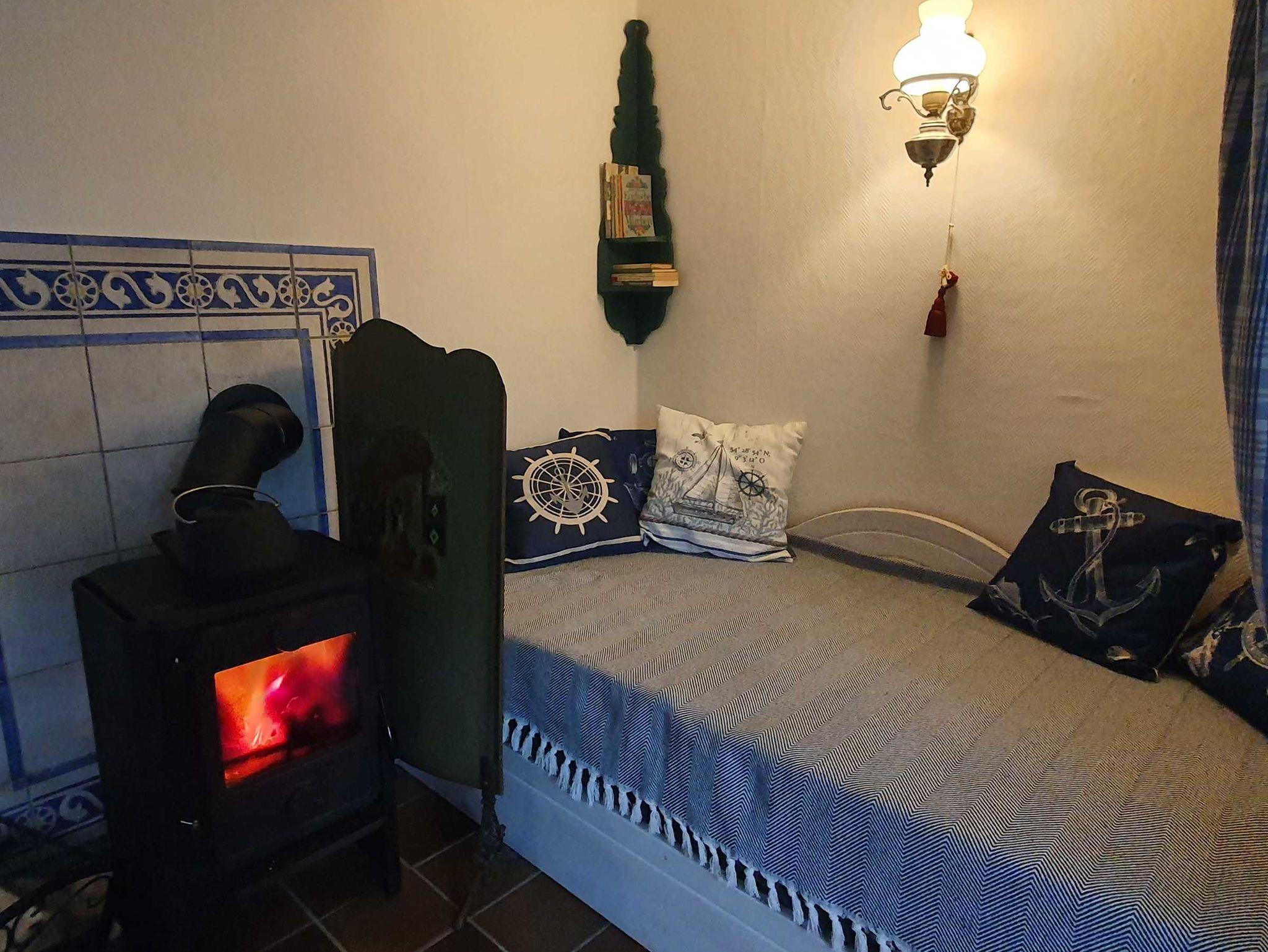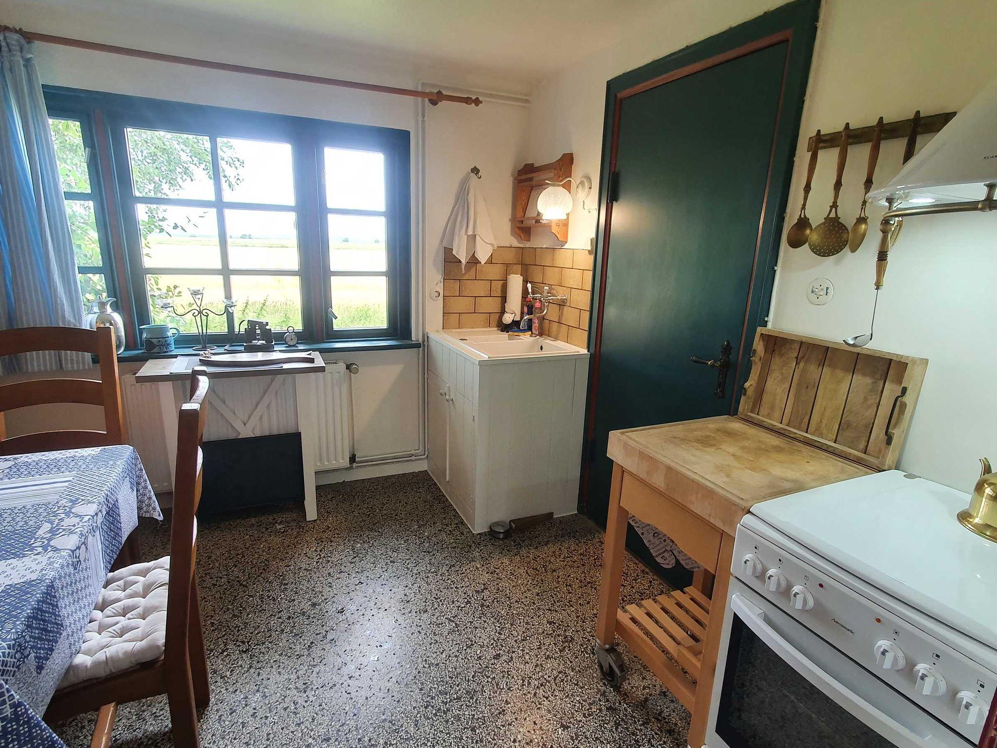 Das Besondere im EG ist der Original Alkoven mit somit einem weiteren Bett (180 x 90), Holzofen, großem Essbereich mit ausgesucht wertigem Geschirr sowie sehr gut und Detail-verliebt ausgestattete Küche mit Essecke, Küchenblock, Retro-Herd und nostalgischer Haube sowie unendlich weit schweifendem Blick über den Deich und die Felder bis dorthin, wo man das Meer schon ganz in der Nähe weiß.