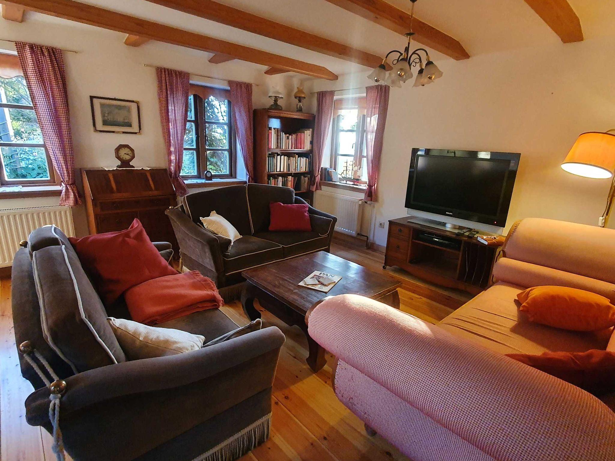 Außerdem ermöglicht das große Wohnzimmer mit eigener Bibliothek, 2 Schlafsofas, 1 Recamiere, diversen Sitzmöglichkeiten sowie Blick nach Norden, Süden und Westen viel Raum zur Entfaltung und Entspannung.