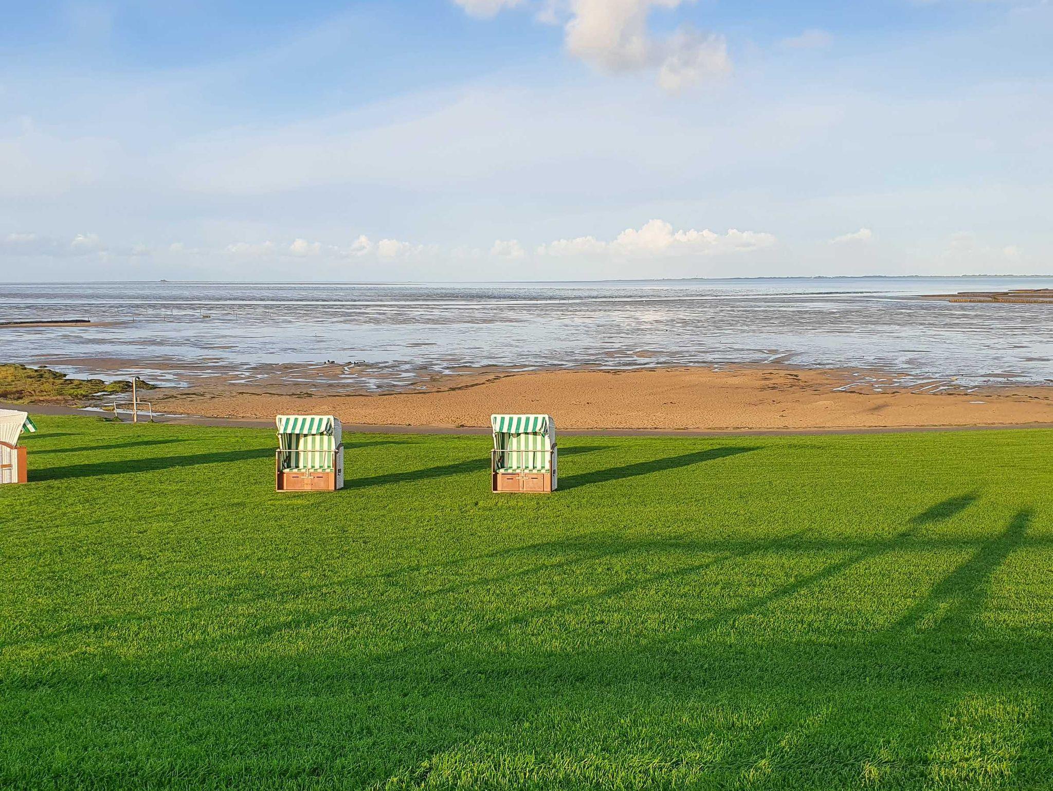 Charmantes Kapitänshuus auf Nordstrand mit Deichblick, romantischem Flair und stilvoller Ausstattung für entspannte Nordseeferien.