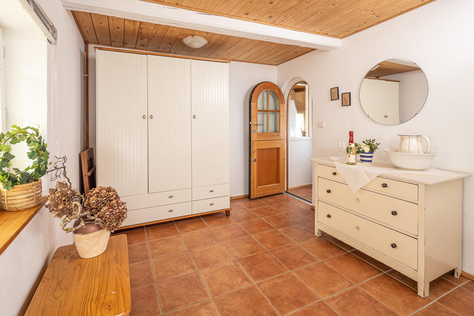 Daneben befindet sich das Schlafzimmer mit Doppelbett. Eine kleine Terrasse vor dem Esszimmer lässt Sie bei schönem Wetter die Sonnenstrahlen auf der Liege genießen.