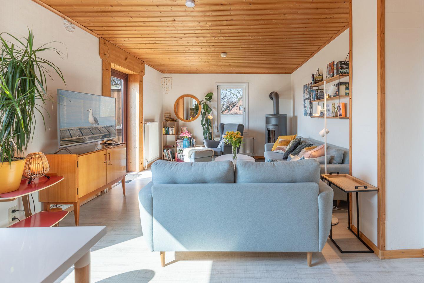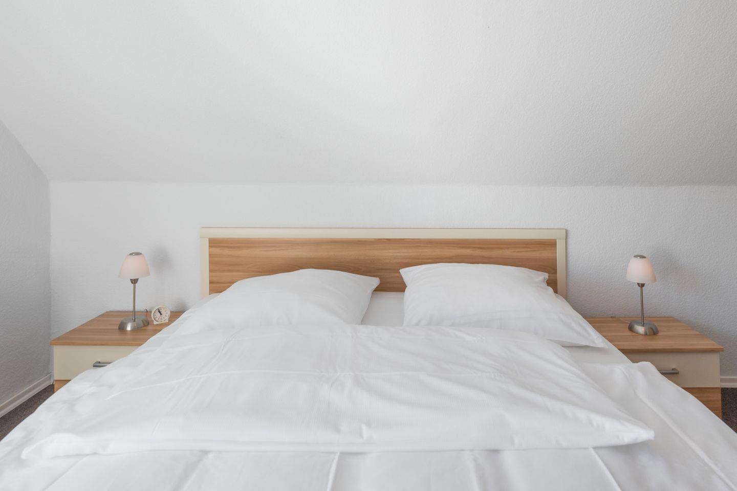 Das Ferienhaus verfügt über zwei Schlafzimmer (je ein Doppelbett, 180 x 200) beide im Obergeschoss und über eine recht steile Treppe erreichbar. Die Küche ist sehr gut ausgestattet: Ceranfeld, Backofen, Geschirrspülmaschine, Kühl/Gefrierschrank, Waschmaschine, Mikrowelle und Kaffeemaschine (Filtergröße 4). Der Wohnbereich verfügt über eine Sitzecke, einen Kaminofen und einen Flachbild-TV. Von hier aus haben Sie Zugang zu der Terrasse, auf der Sie den außergewöhnlichen Weitblick über die Felder genießen können. Liege- und Gartenstühle und ein Grill stehen für Sie bereit.
