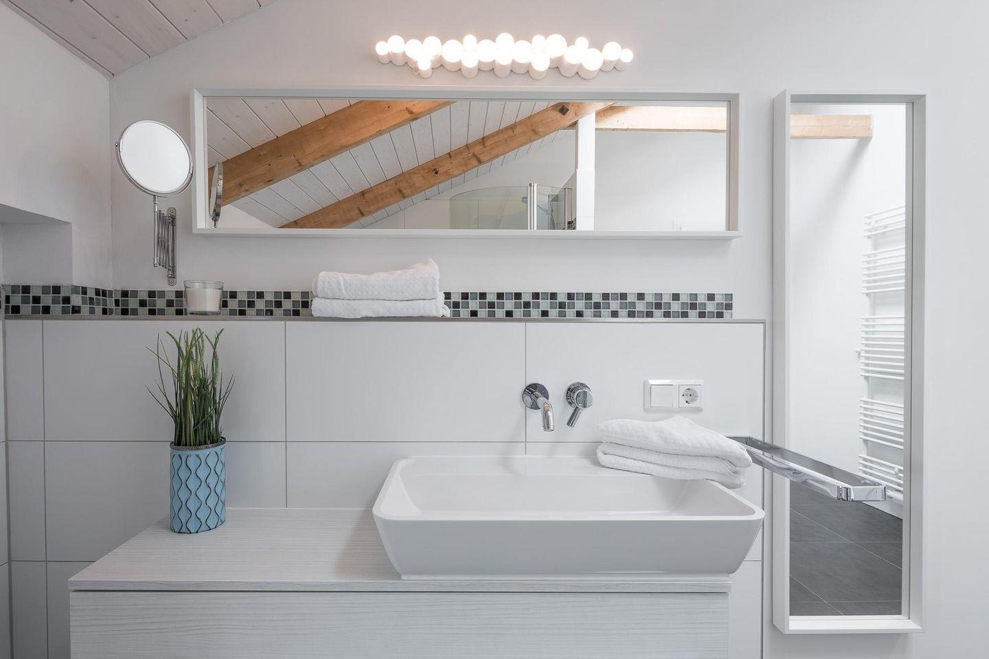 Das geschmackvoll und modern eingerichtete Apartment bietet Platz für bis zu 2 Personen. Der Schlafbereich (1 Doppelbett, 160 x 200) befinden sich im 1. OG (über eine geschlossene Treppe erreichbar), ebenso wie das großzügige Duschbad mit schöner Infrarotsauna zum Relaxen.