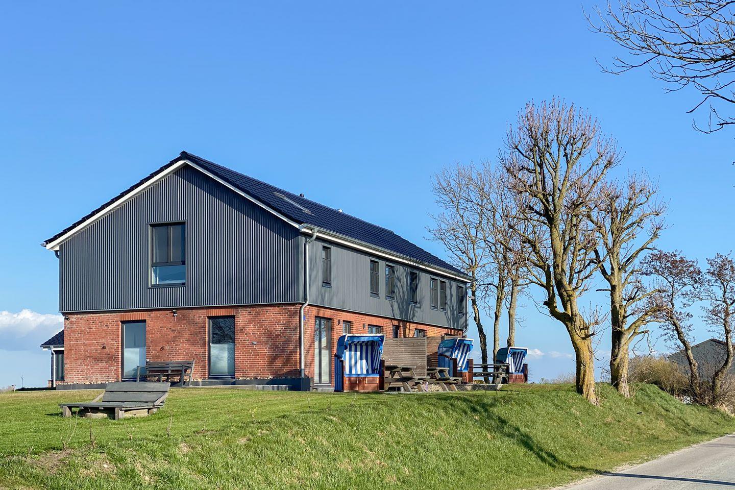Nordstrand – meine Insel an Land: Nur wenige Meter vom Deich entfernt erwartet Sie dieses moderne, lichtdurchflutete Apartment für bis zu 2 Personen. Genießen Sie mit Blick auf den Deich dieses besondere Ambiente in Ihrer Foftein-Butze.