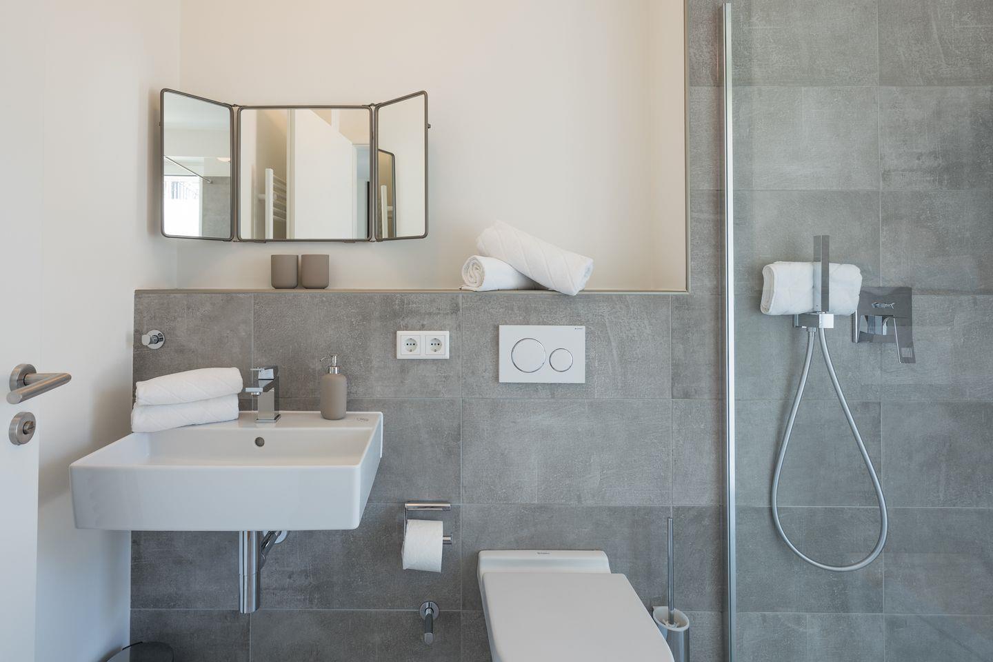 Moderne Ferienwohnung Liselotte mit Seeblick, Terrasse, WLAN und Strandnähe auf Nordstrand im stilvollen Apartmenthaus.
