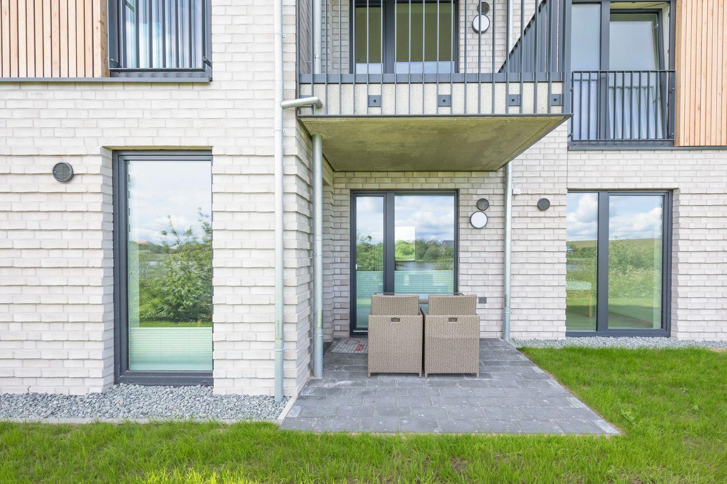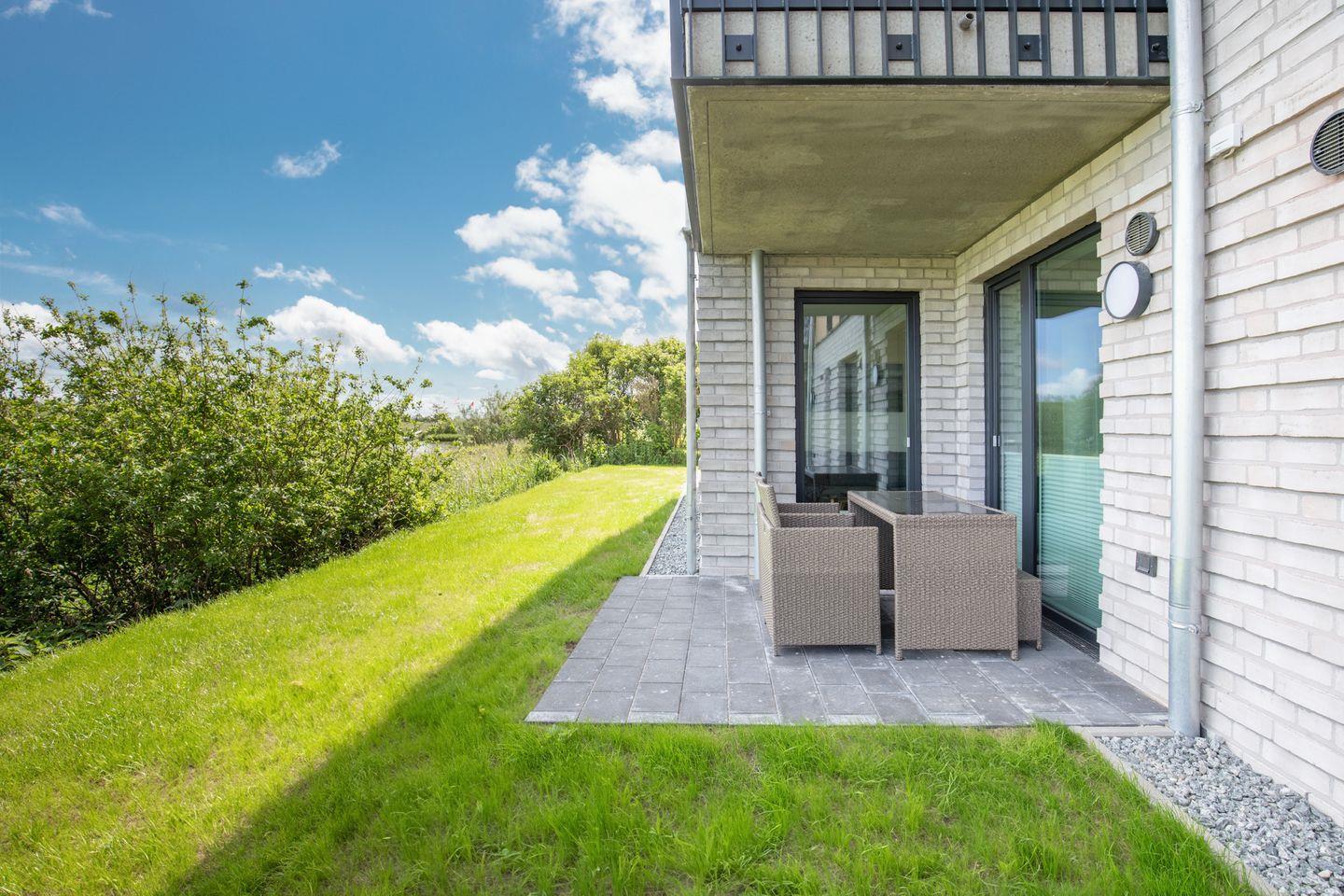 Über das Wohnzimmer und das Schlafzimmer haben Sie Zugang zu der geschützten Terrasse mit Gartenmöbeln für gemütliche Stunden.