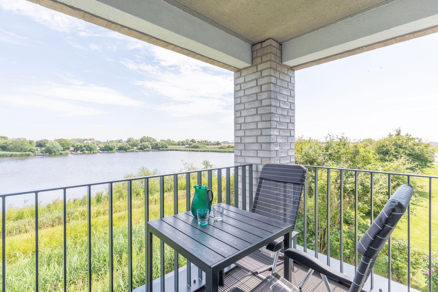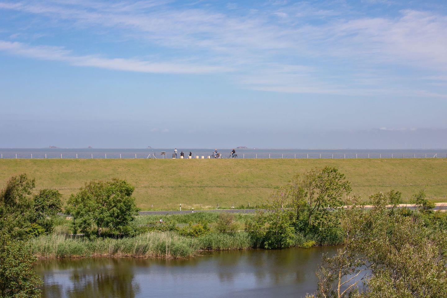 Über das Wohn- und das Schlafzimmer haben Sie Zugang zum sonnigen und (blick-) geschützten Eckbalkon mit Gartenmöbeln für gemütliche Stunden mit einem herrlichen Blick auf den idyllischen See und den Deich, auf dem man die Schafe beim Grasen beobachten kann. Hier können Sie Ihren Urlaubstag gemütlich ausklingen lassen, dem Vogelgezwitscher lauschen und das unvergleichliche Naturpanorama genießen.