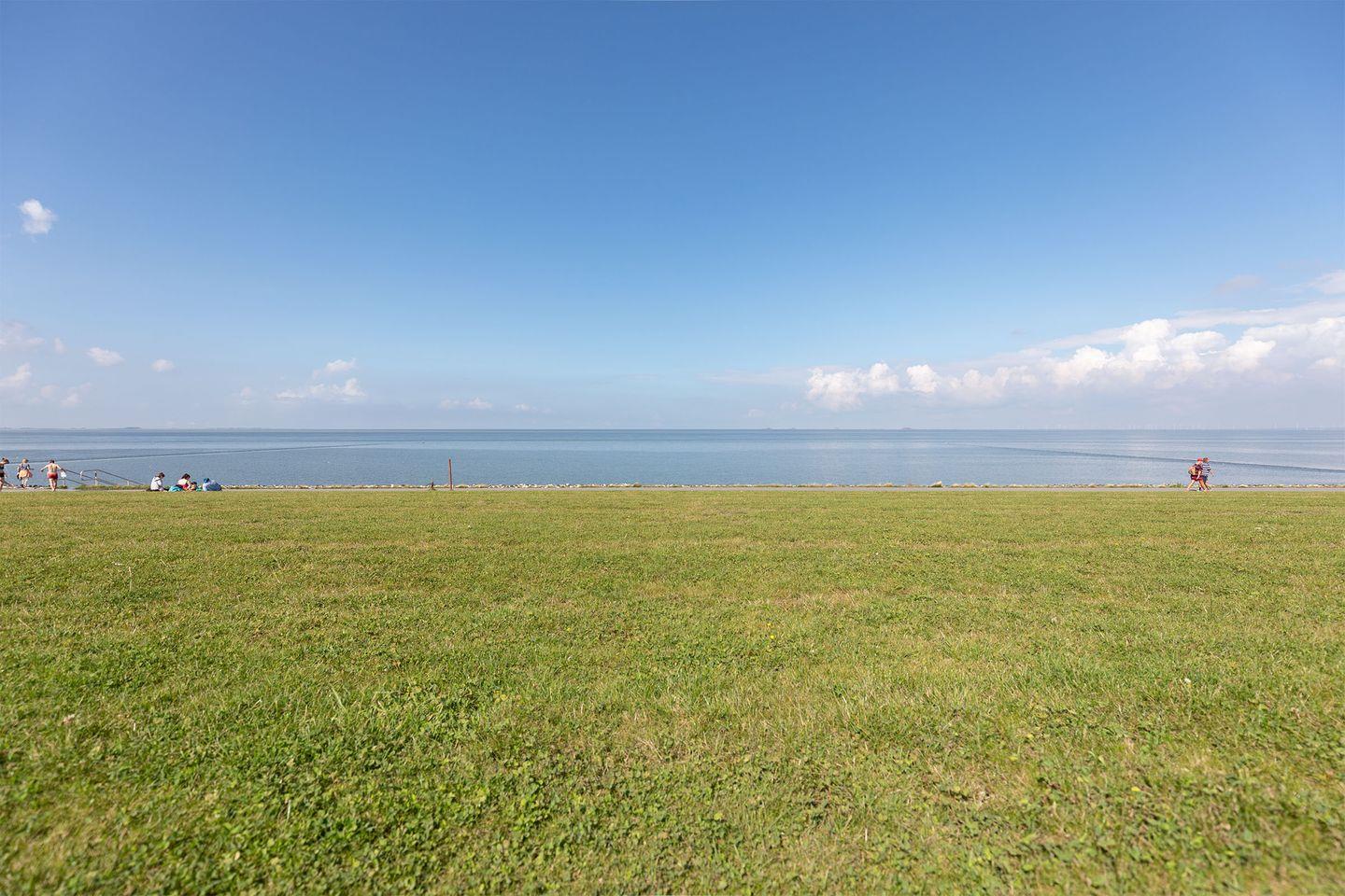 Erholung auf Nordstrand: Verbringen Sie Ihre schönste Zeit des Jahres in dieser modernen Neubau-Wohnung mit direktem Blick auf den Deich und auf den See.