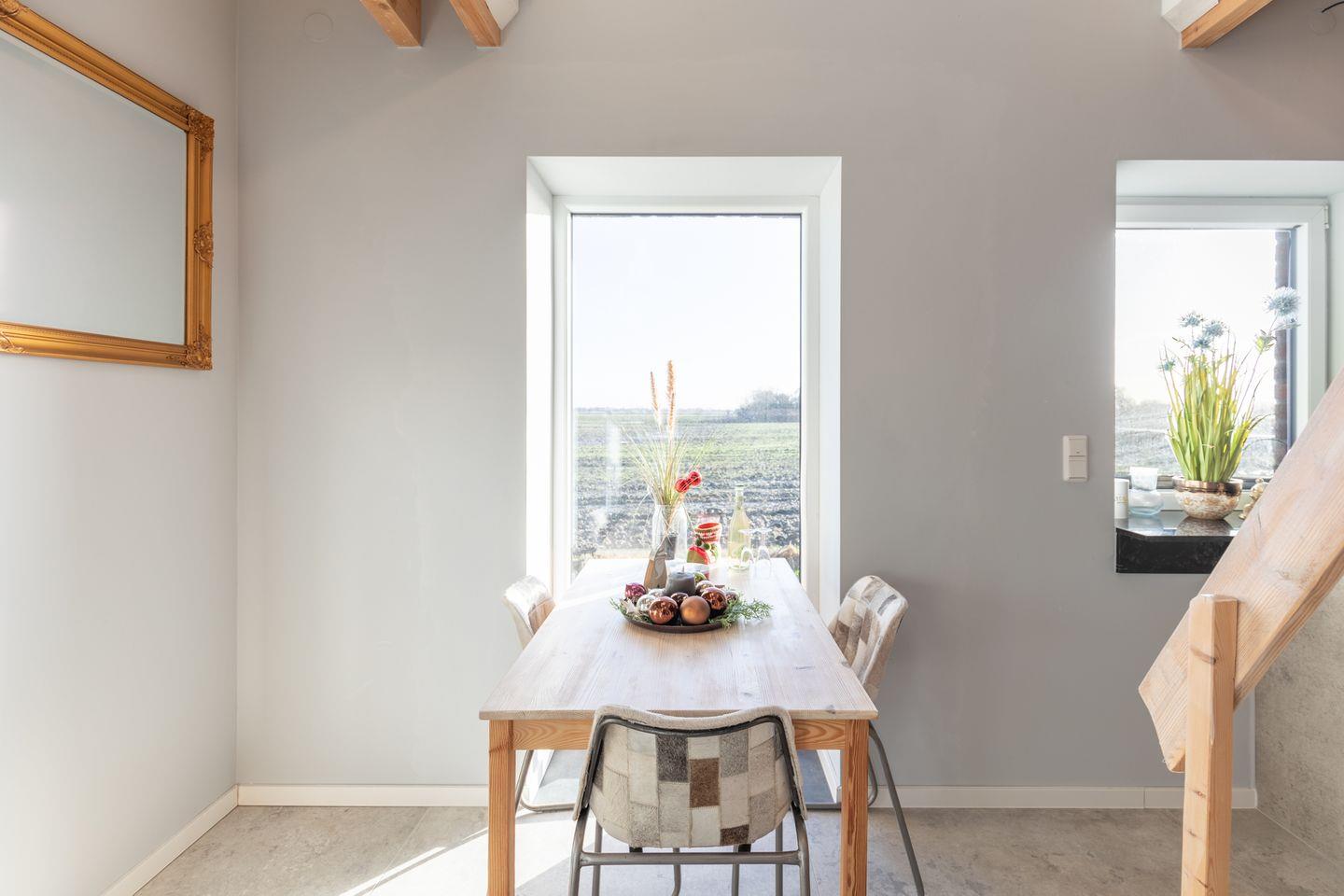 Über eine Leiter gelangen Sie in das Obergeschoss, wo sich das gemütliche Schlafzimmer (1 Doppelbett, 160 x 200) und das stilvolle Wohnzimmer befinden, das mit einem Flachbildfernseher (SAT) ausgestattet ist und für Unterhaltung sorgt. Auch der Blick aus dem Fenster über die weiten Felder bietet viel Abwechslung. Beide Räume sind geschmackvoll eingerichtet und bieten einen herrlichen Rückzugsort nach einem erlebnisreichen Tag.