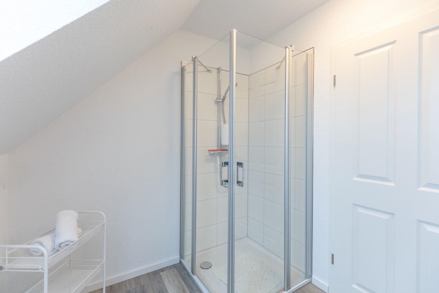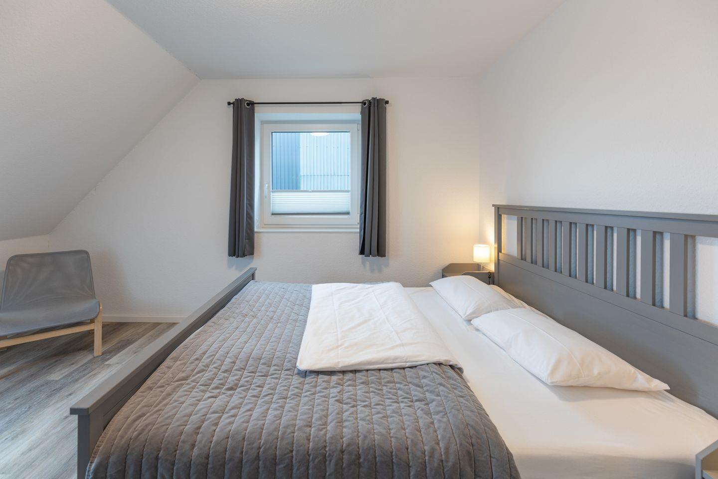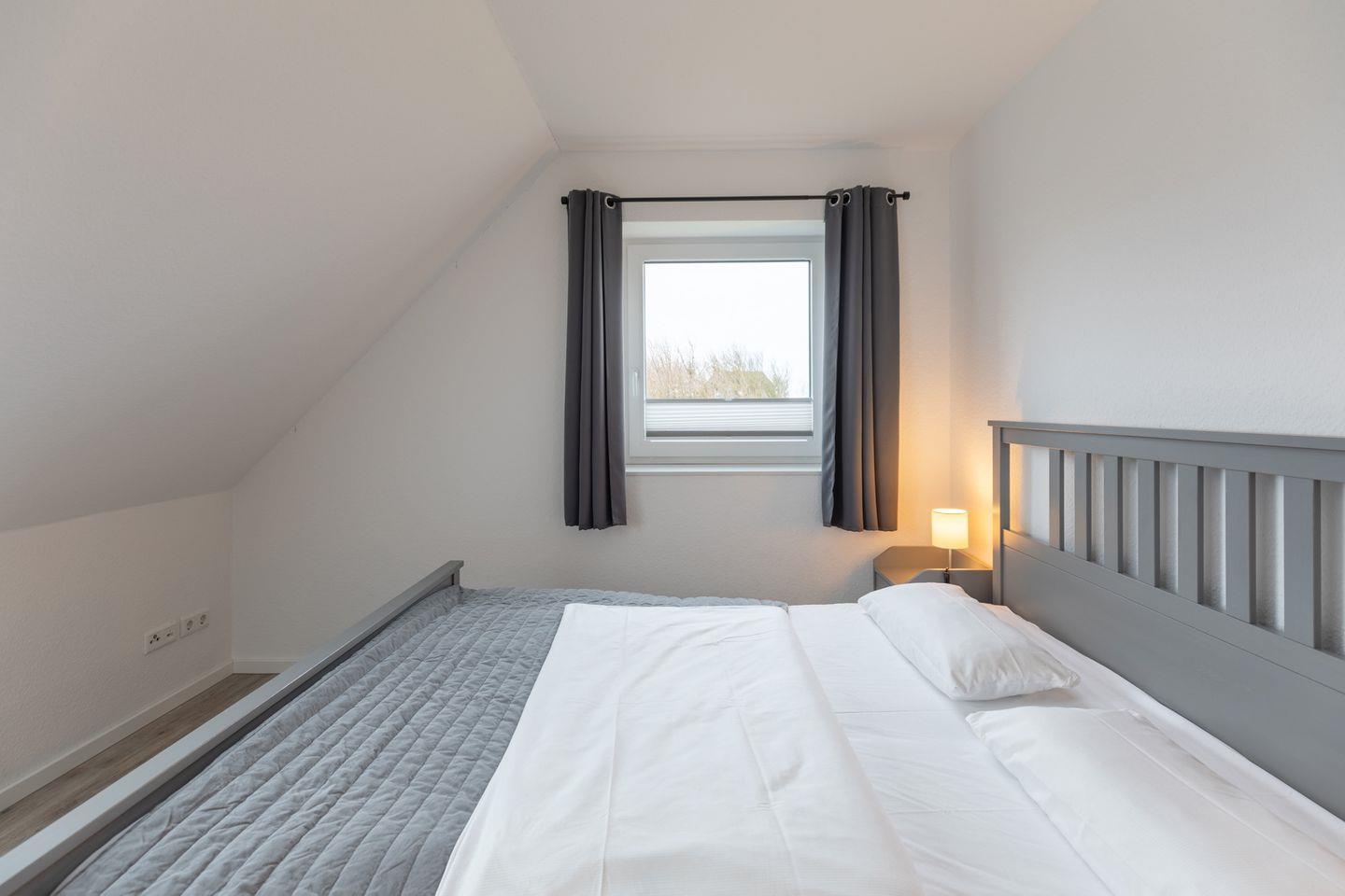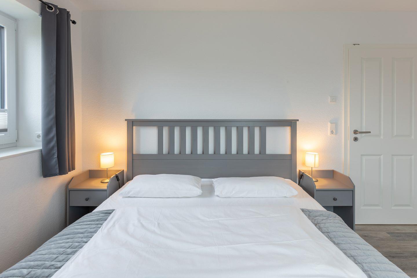 Das Badezimmer besticht durch seine Helligkeit und bietet eine angenehme Atmosphäre. Das erste Schlafzimmer, ausgestattet mit einem bequemen Doppelbett (180 x 200), ermöglicht einen ungestörten Blick auf die weiten Felder. Ein zweites Schlafzimmer mit einem weiteren Doppelbett (180 x 200) sowie ein drittes Schlafzimmer mit zwei Einzelbetten (90 x 200) bieten ausreichend Platz und Komfort für die ganze Familie.