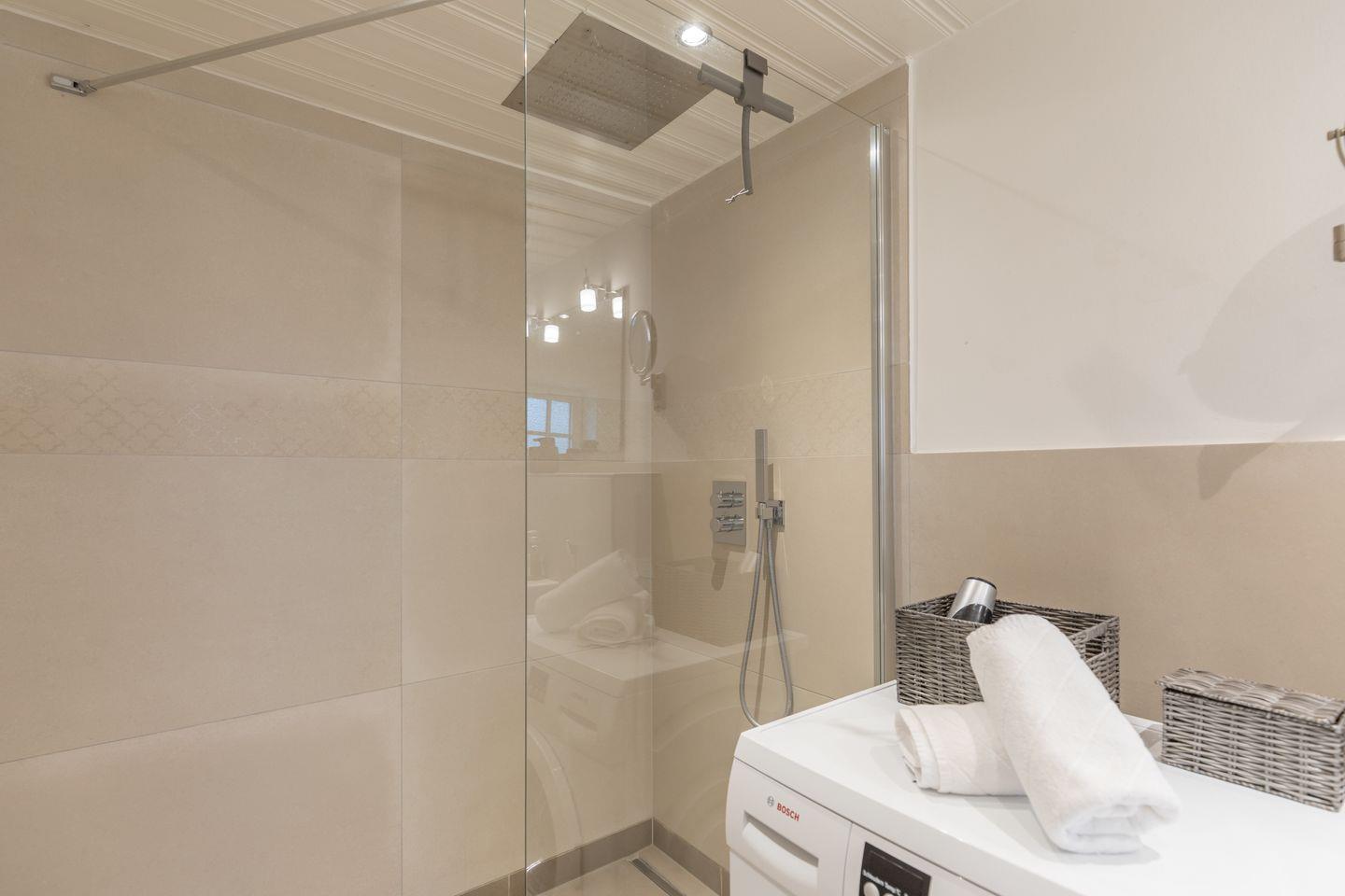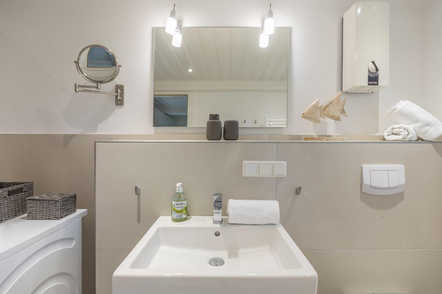 Das Badezimmer wurde 2020 vollständig renoviert und bietet modernen Komfort. Ausgestattet mit einer ebenerdigen Regendusche, einem Waschbecken mit großzügiger Ablage, einem beleuchteten Spiegel, einer Waschmaschine, einem beheizbaren Handtuchhalter sowie einer Toilette, lässt es keine Wünsche offen.