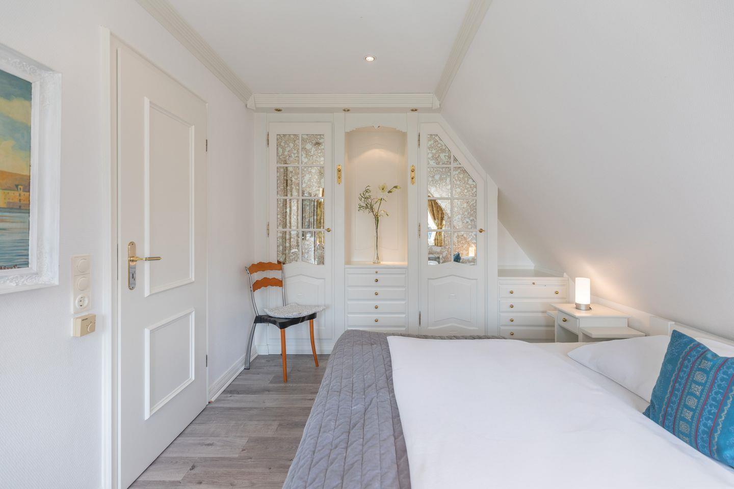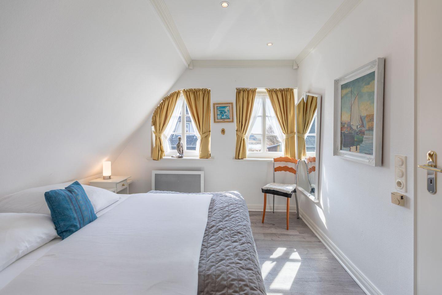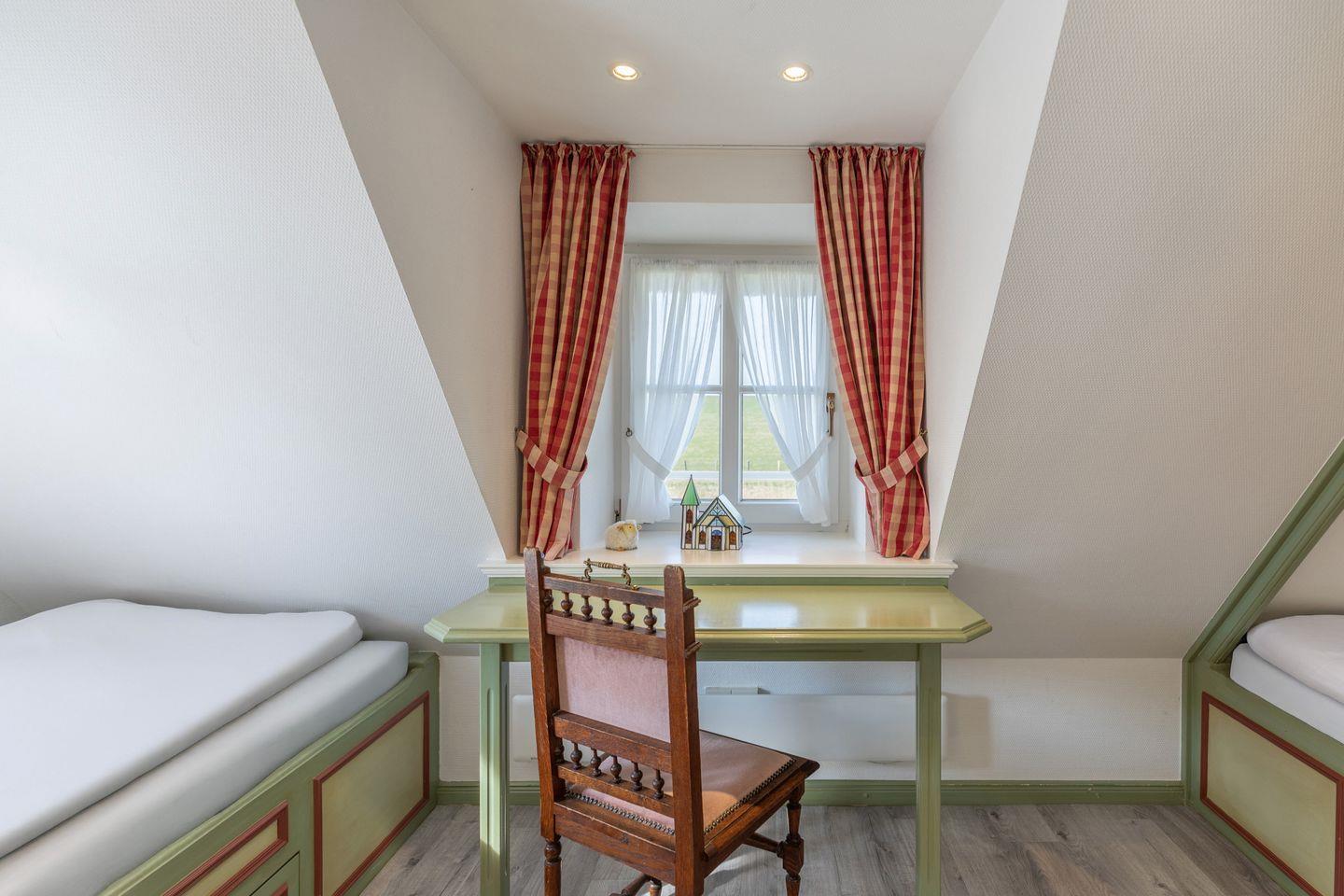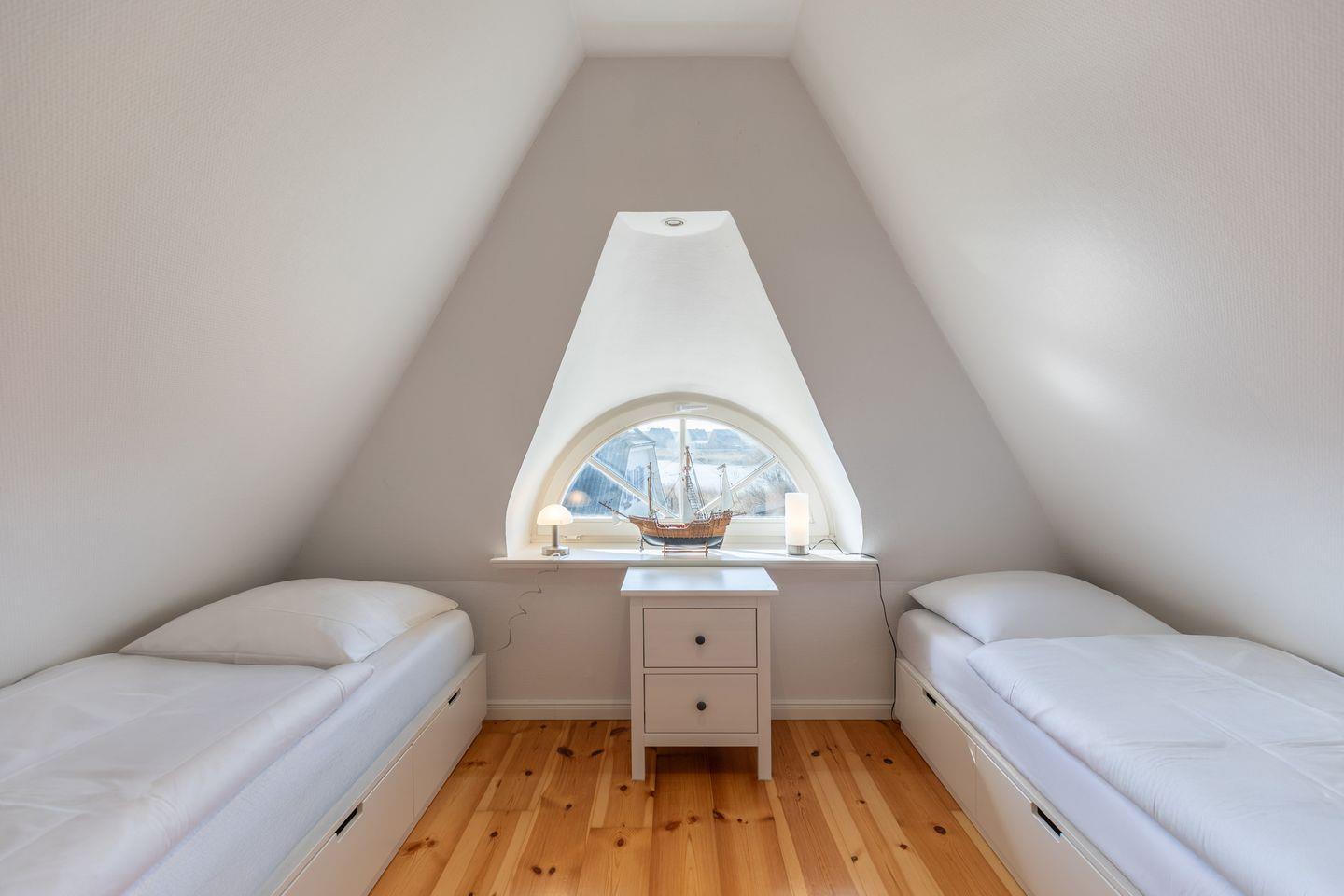Im ersten Obergeschoss befindet sich neben einem gemütlichen Doppelbett (200 x 200) ein weiteres Schlafzimmer mit 2 Alkovenbetten (je 90 x 200). Im zweiten Obergeschoss finden zwei weitere Gäste in zwei Einzelbetten (je 90 x 200) einen Platz zum Träumen.
