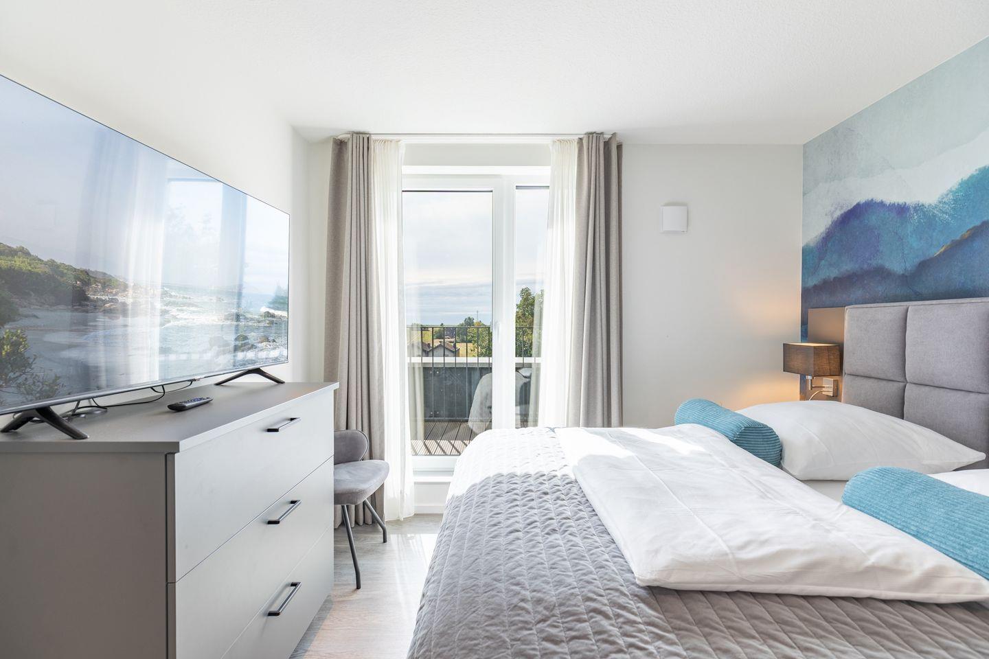Das Apartment wurde im Jahr 2023 fertiggestellt und befindet sich im dritten Obergeschoss (Staffelgeschoss) eines modernen Gebäudes mit Aufzug. Auf großzügigen 76 qm vereint es elegantes Design mit hohem Wohnkomfort und bietet Platz für bis zu vier Personen.