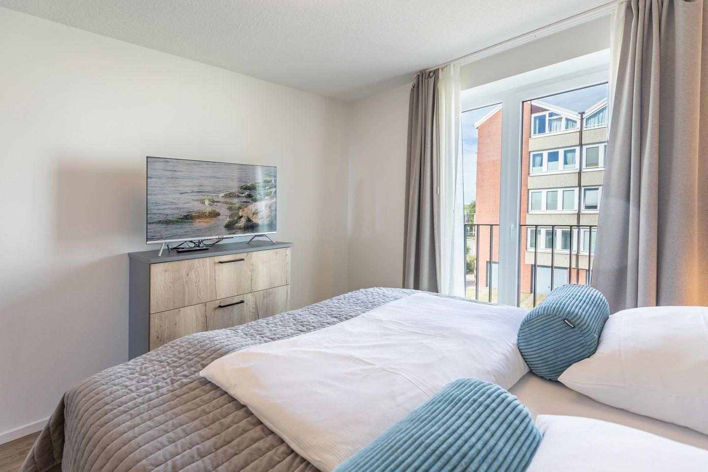 Ein besonderes Highlight ist der gemütliche Balkon mit bequemen Gartenmöbeln. Hier können Sie entspannen und die frische Nordseeluft genießen. Die gesamte Wohnung ist mit einer Fußbodenheizung (Erdwärme) ausgestattet, sodass Sie sich auch in den kühleren Monaten rundum wohlfühlen. Alle Fenster sind zudem mit Sichtschutz versehen.