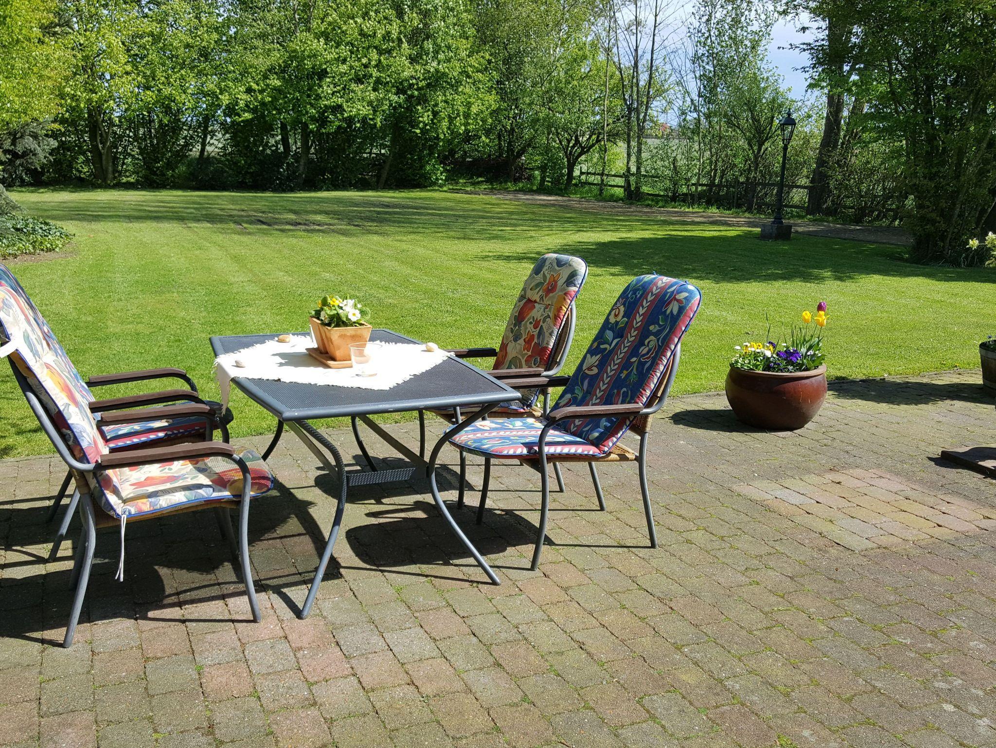 Charmante Ferienwohnung Lüttje Huus an't Diek mit Kamin und eigenem Bootssteg an der Jümme für Ruhesuchende und Angler.