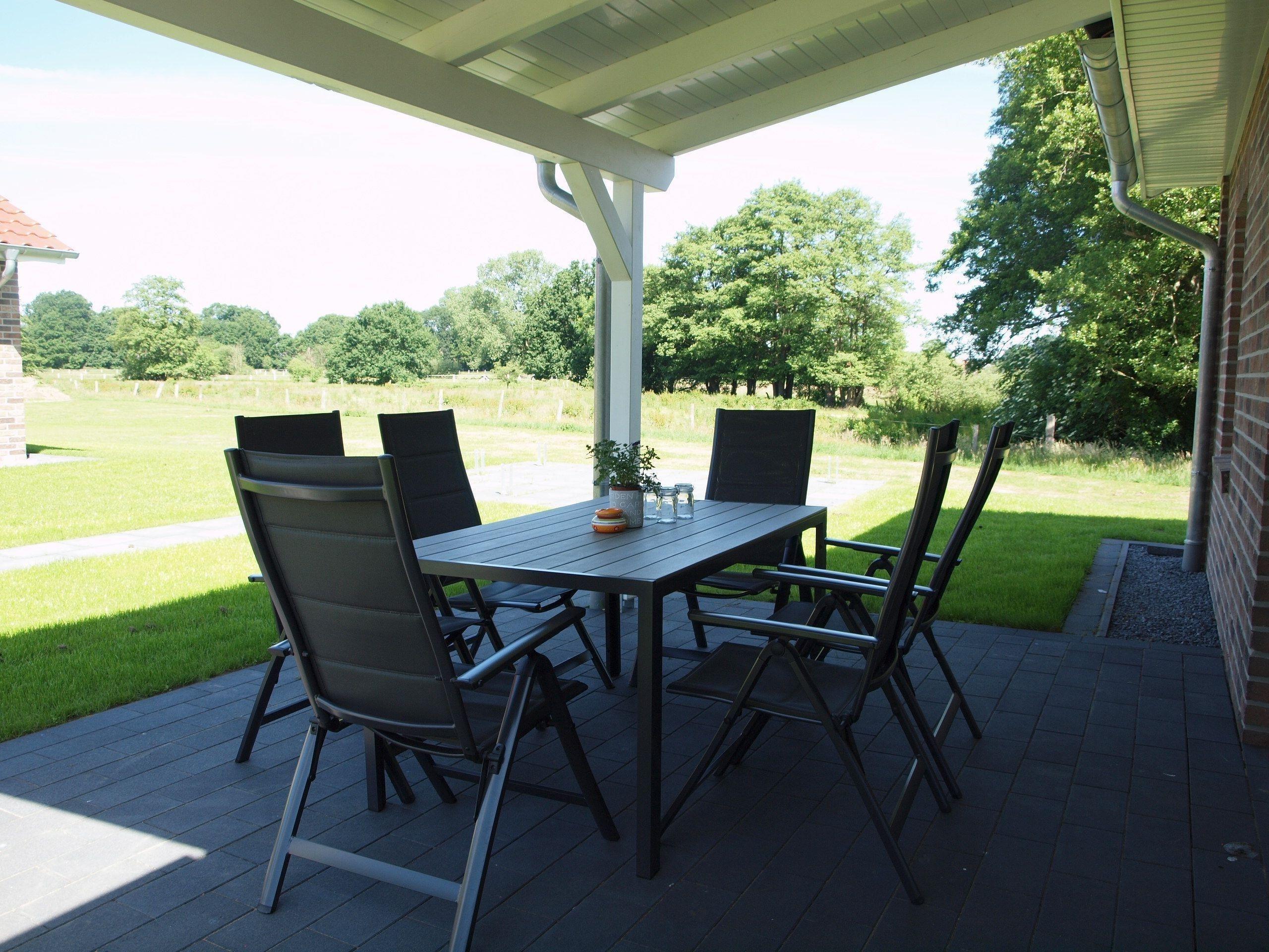Das Ferienhaus Kleine Briese liegt mitten im Grünen im Ferienhausgebiet Hof Beel, auf einem ca. 520 m² großem Grundstück. 2 PKW-Einstellplätze und eine überdachte Terrasse gehören zum Haus. Die Grunstücksgrenzen verlaufen fließend und enden in Feld und Wiesen. Sie werden es mög, es ist einmalig.