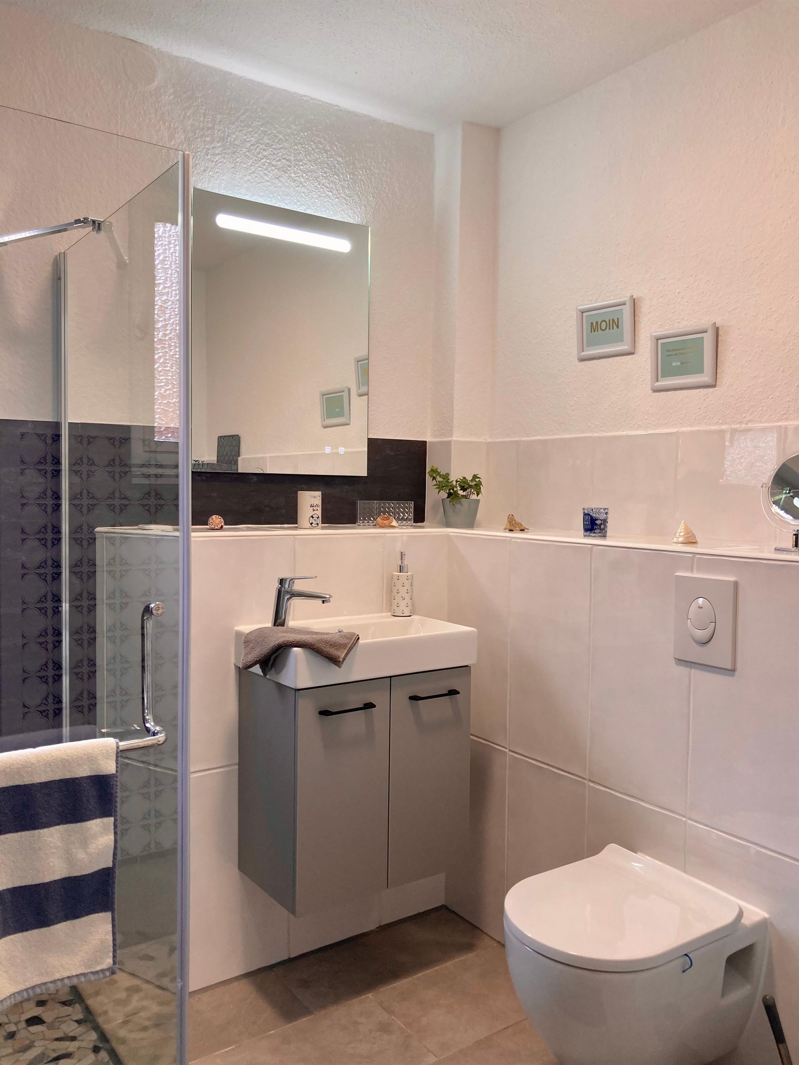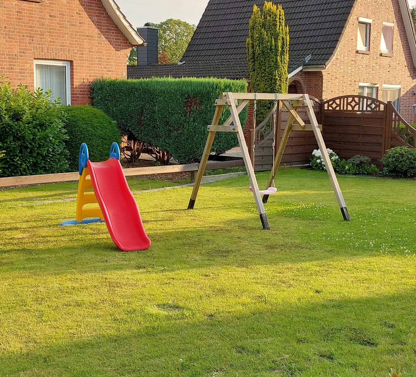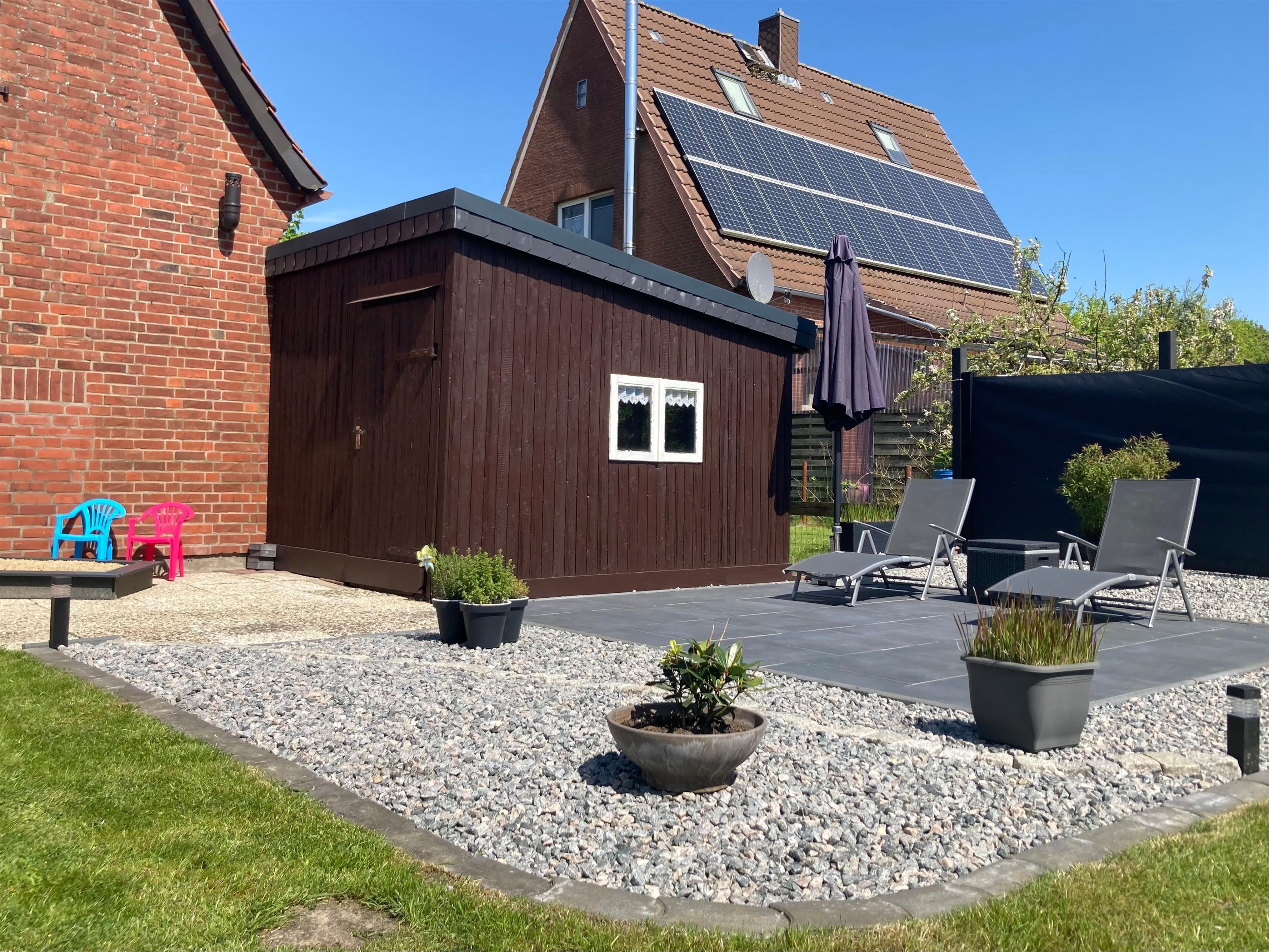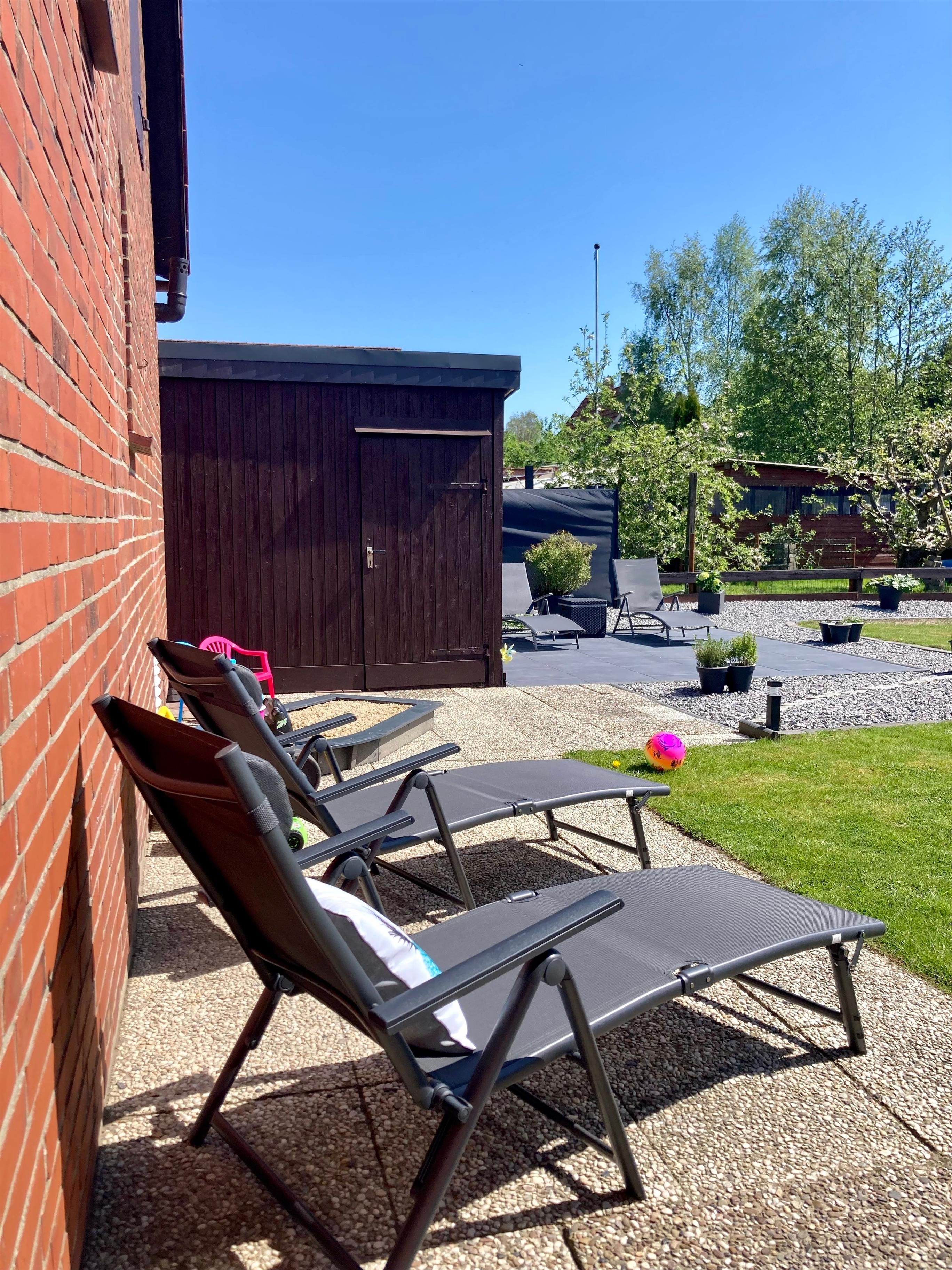 Das Ferienhaus steht auf einem ca. 600m² großen und gepflegten Grundstück. Zur Hausrückseite Garten mit Randbepflanzung, Rasenspielfläche sowie einer offenen und einer überdachten Terrasse mit Mobiliar, Gasgrill, 6 Sonnenliegen und einer Auswahl an Kinderspielgeräten (Schaukel, Rutsche, Bobbycar, Dreirad, Boccia, etc). Das Haus wurde 2023/2024 komplett renoviert und neu möbliert. Freundlich-helle, geschmackvolle und gemütliche Einrichtung mit liebevollen Details in Raum- und Farbgestaltung. Überdurchschnittliche Ausstattung. 3x Sat-TV, Radio und Internetanschluß (WLAN, gratis). In den Wohn-/Schlafbereichen Laminat, in der Küche Vinylboden, jeweils in heller Holzoptik. Der Pellet-Ofen als behagliche Wärmequelle im Wohnraum ist zur freien Nutzung der Gäste, Pelletbefüllung nach Rücksprache mit den Besitzern.