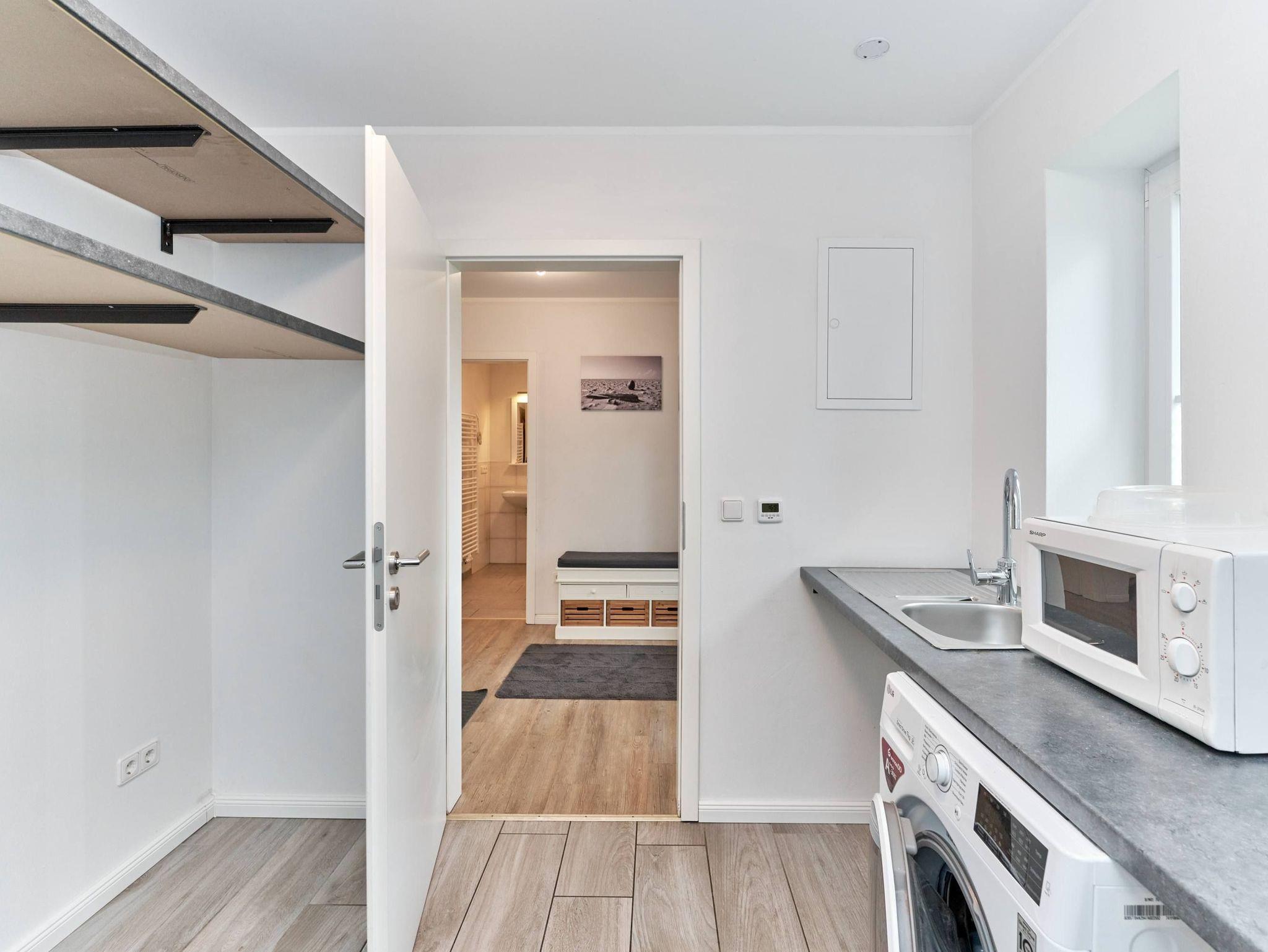Der einladende Wohn- und Essbereich ist das Herzstück der Wohnung. Hier können Sie nach einem erlebnisreichen Tag entspannen, gemeinsam essen oder einfach die Ruhe genießen. Die integrierte, voll ausgestattete Küche lässt keine Wünsche offen hier können Sie Ihre Lieblingsgerichte zubereiten. Im angrenzenden Hauswirtschaftsraum finden Sie praktischen Stauraum für Ihre Utensilien. Ein gut ausgestattetes Badezimmer mit Dusche rundet das Erdgeschoss ab.