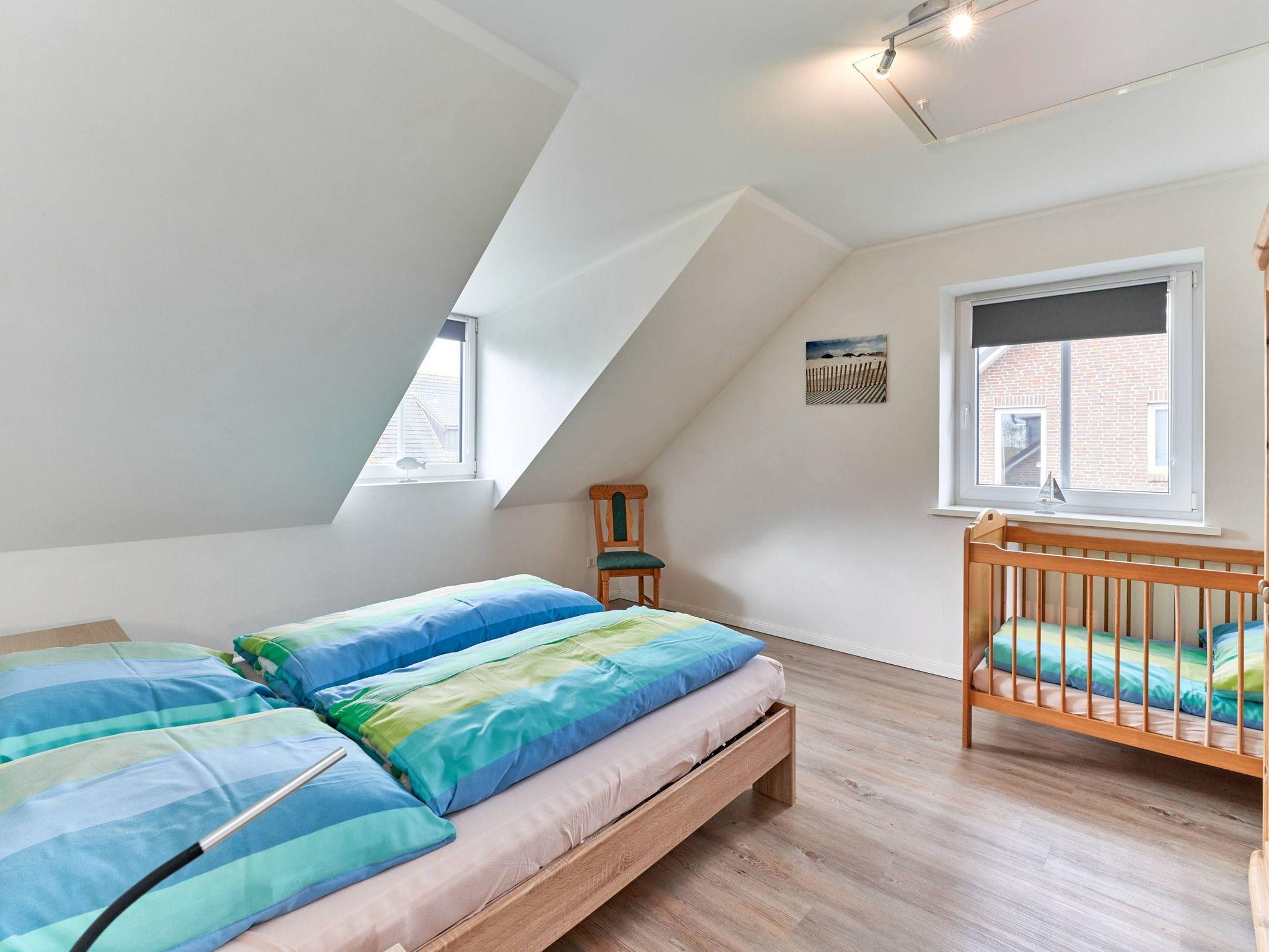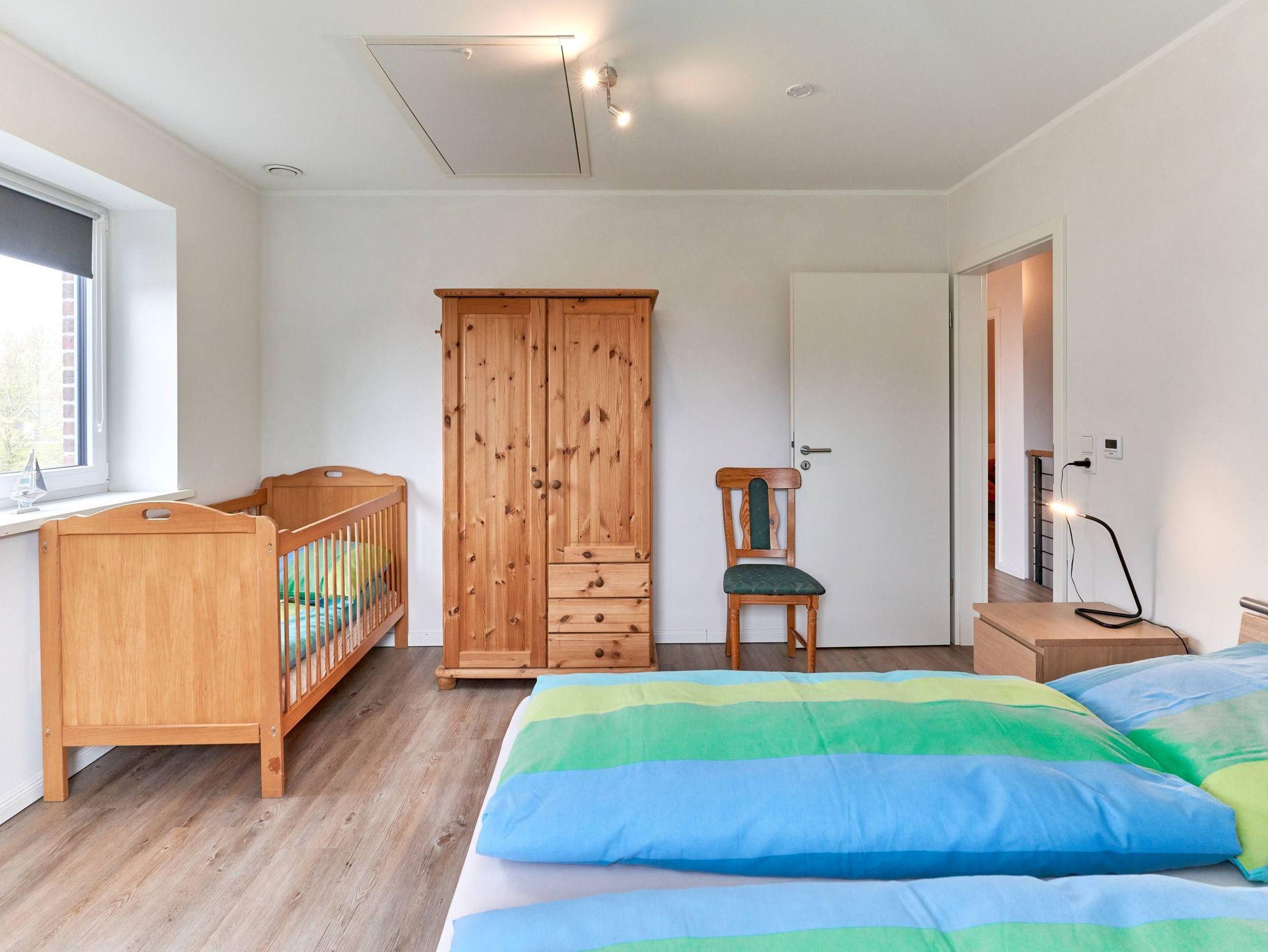 • Schlafzimmer 2: Doppelbett und Kinderbett, ideal für die kleine Familie.