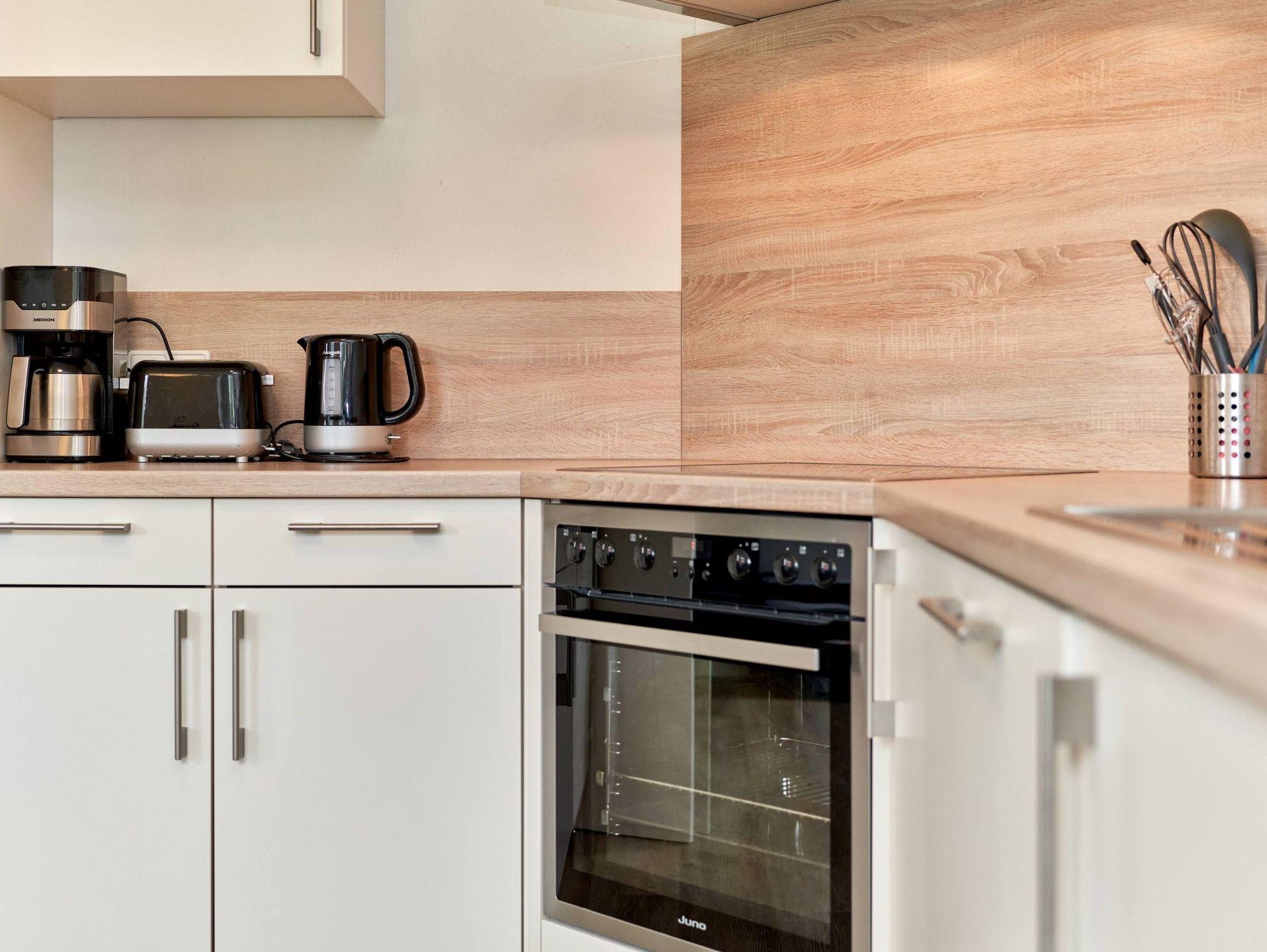 Die moderne, voll ausgestattete Küche lässt keine Wünsche offen. Hier finden Sie alles, was Sie für die Zubereitung leckerer Mahlzeiten benötigen: