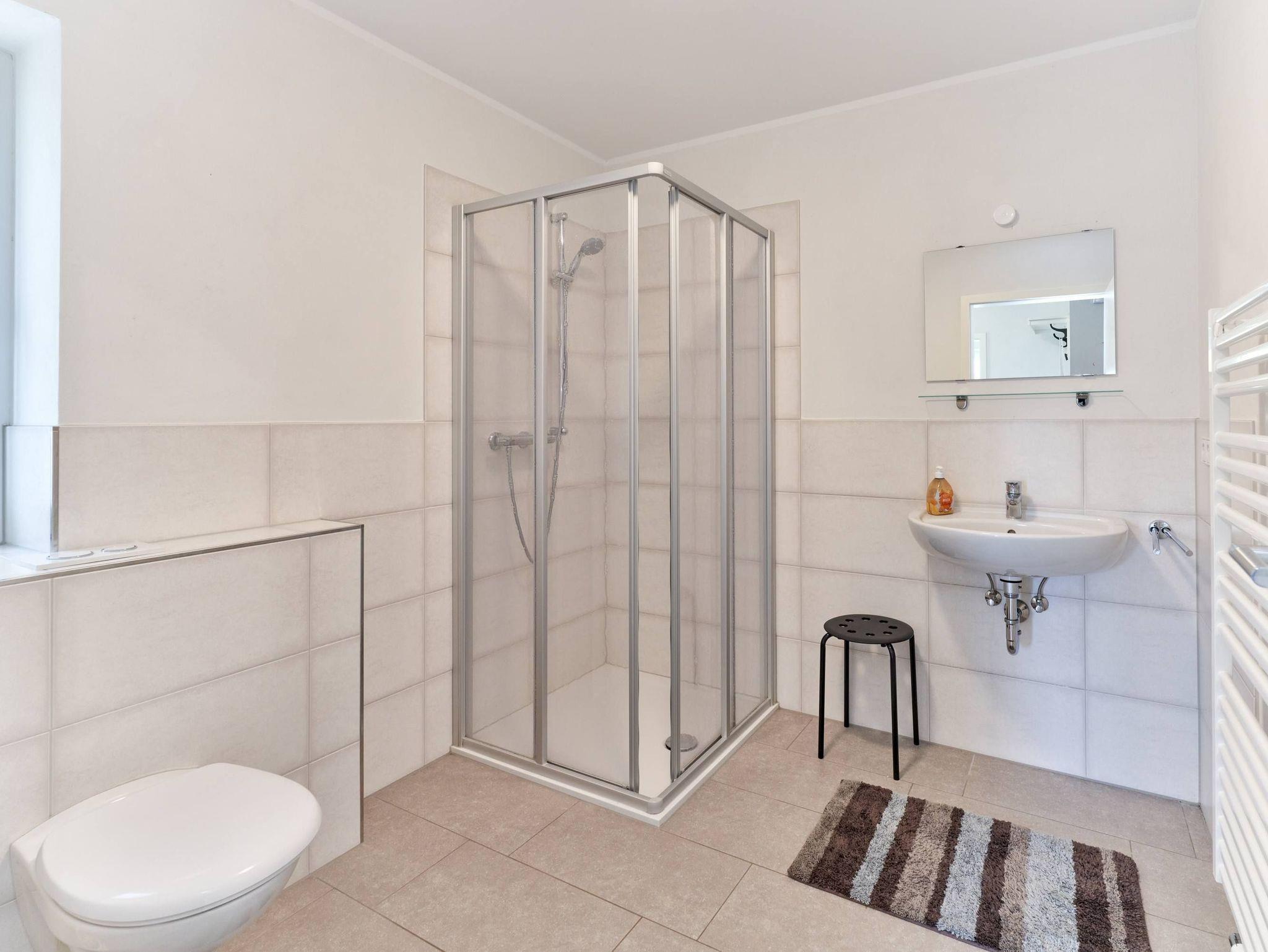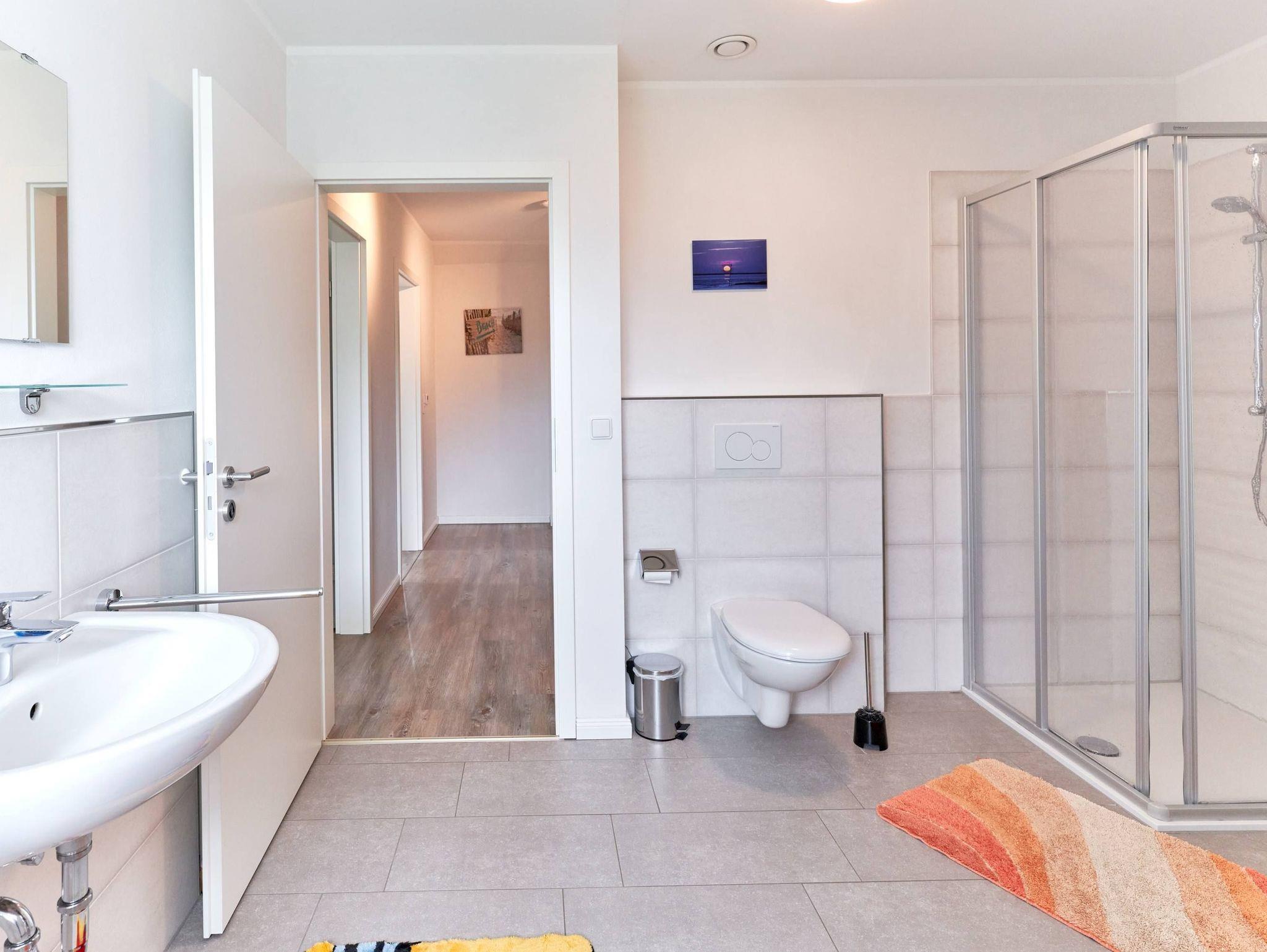 Das großzügige Badezimmer im Dachgeschoss bietet Ihnen eine Dusche, ein WC sowie ein Waschbecken ? ideal für entspannte Wellnessmomente nach einem langen Tag an der frischen Luft.