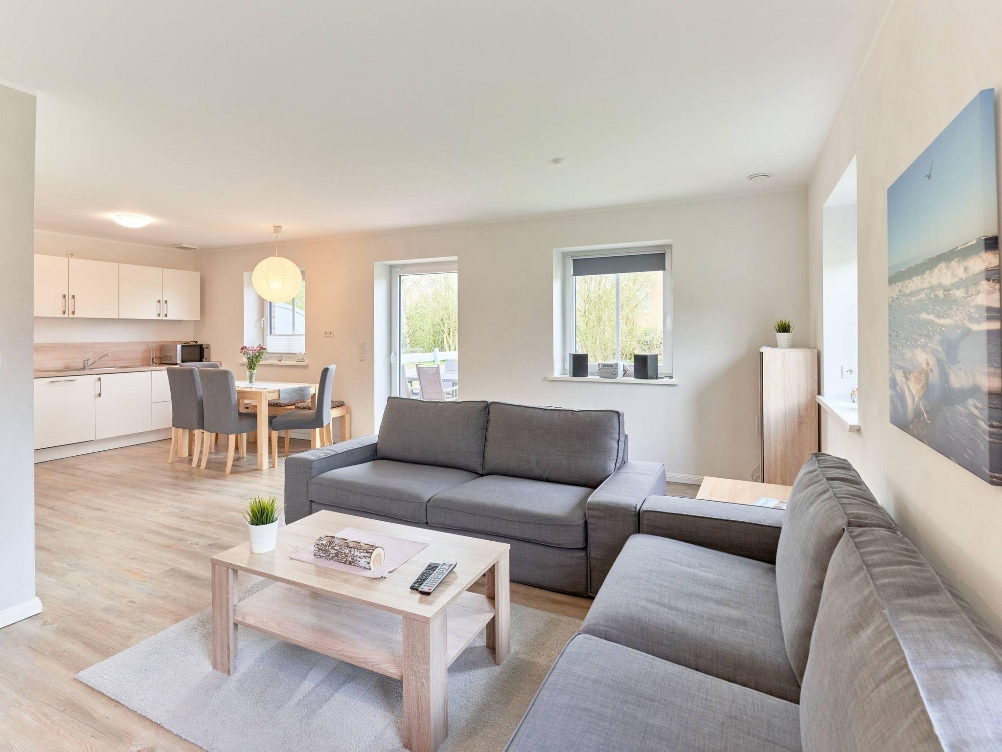 Im Erdgeschoss erwartet Sie ein großzügiger, offener Wohn- und Essbereich, der perfekt für gemeinsame Stunden mit Familie oder Freunden geeignet ist. Die großen Fensterfronten lassen viel Tageslicht herein und bieten einen herrlichen Blick in den Garten. Die bequeme Sofaecke lädt zu gemütlichen Abenden ein, sei es mit einem guten Buch oder einem spannenden Film. Ein Flachbild-TV sowie kostenfreies WLAN sorgen für Unterhaltung.