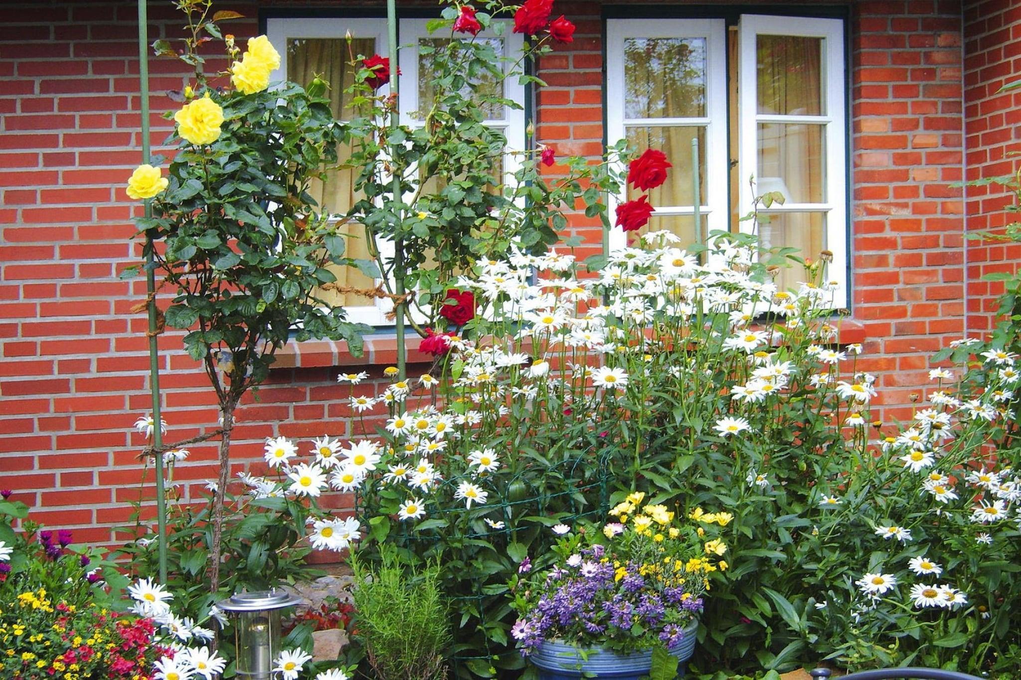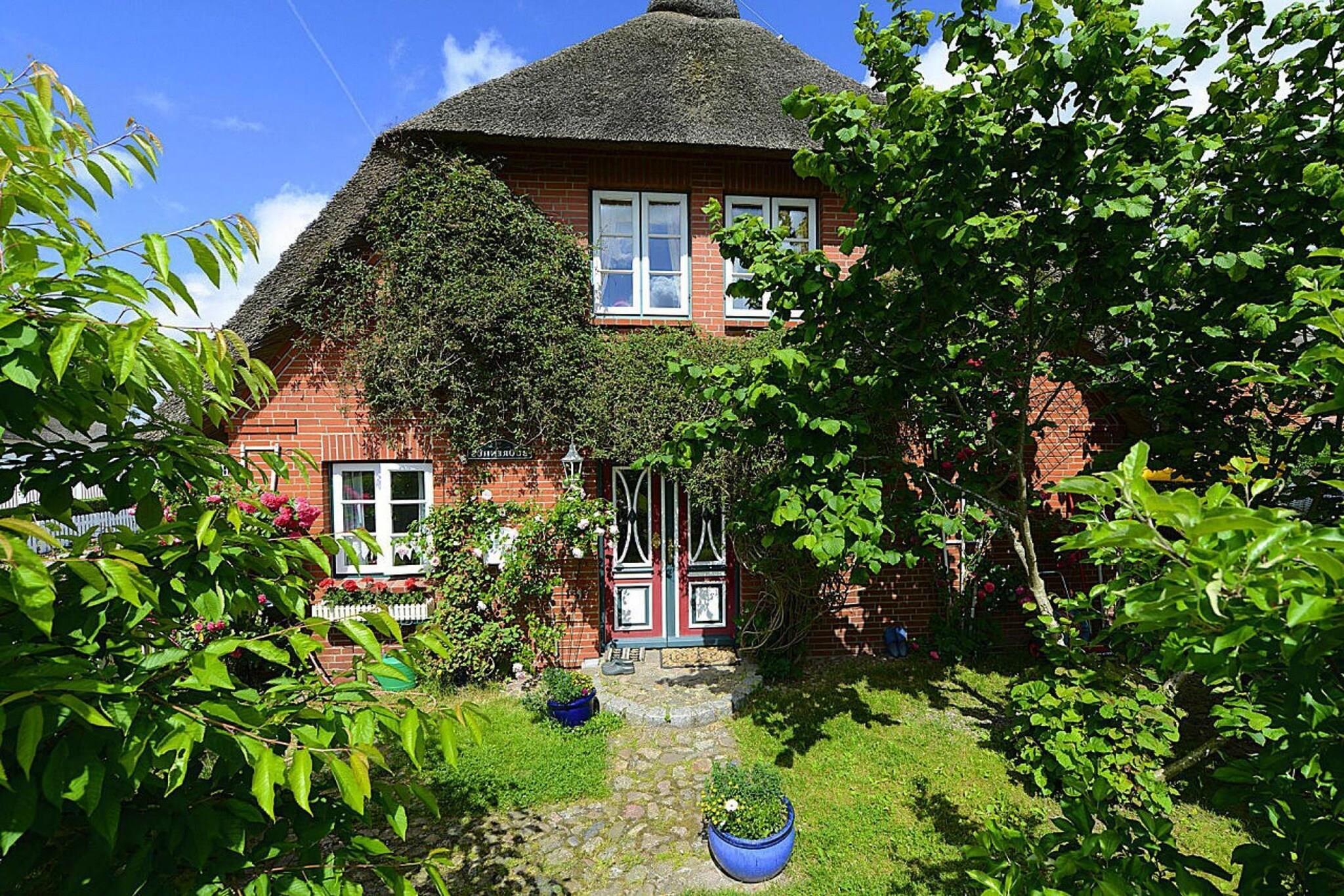 Gemütliche Ferienwohnung auf Föhr in einem reetgedeckten Haus mit Garten, ideal für Erholung und Aktivitäten in der Natur.