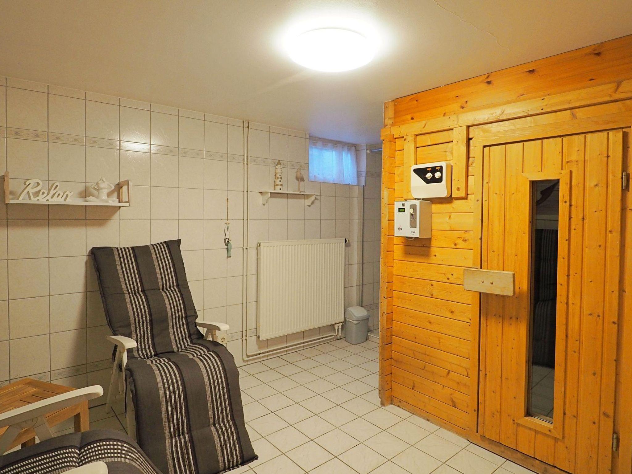 Im Keller des Hauses befindet sich die Sauna mit Ruhebereich, eine Waschmaschine und Wäschetrockner (alles gemeinschaftlich und gegen Gebühr).