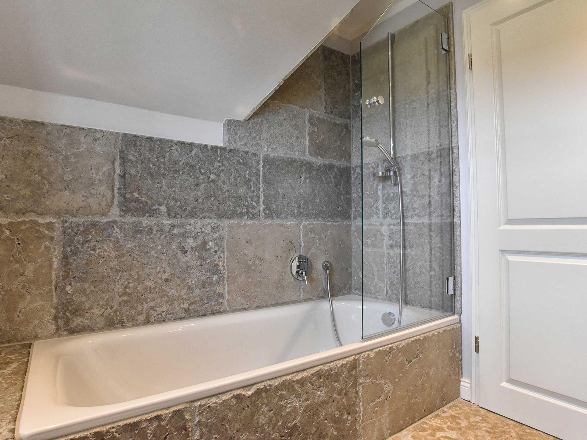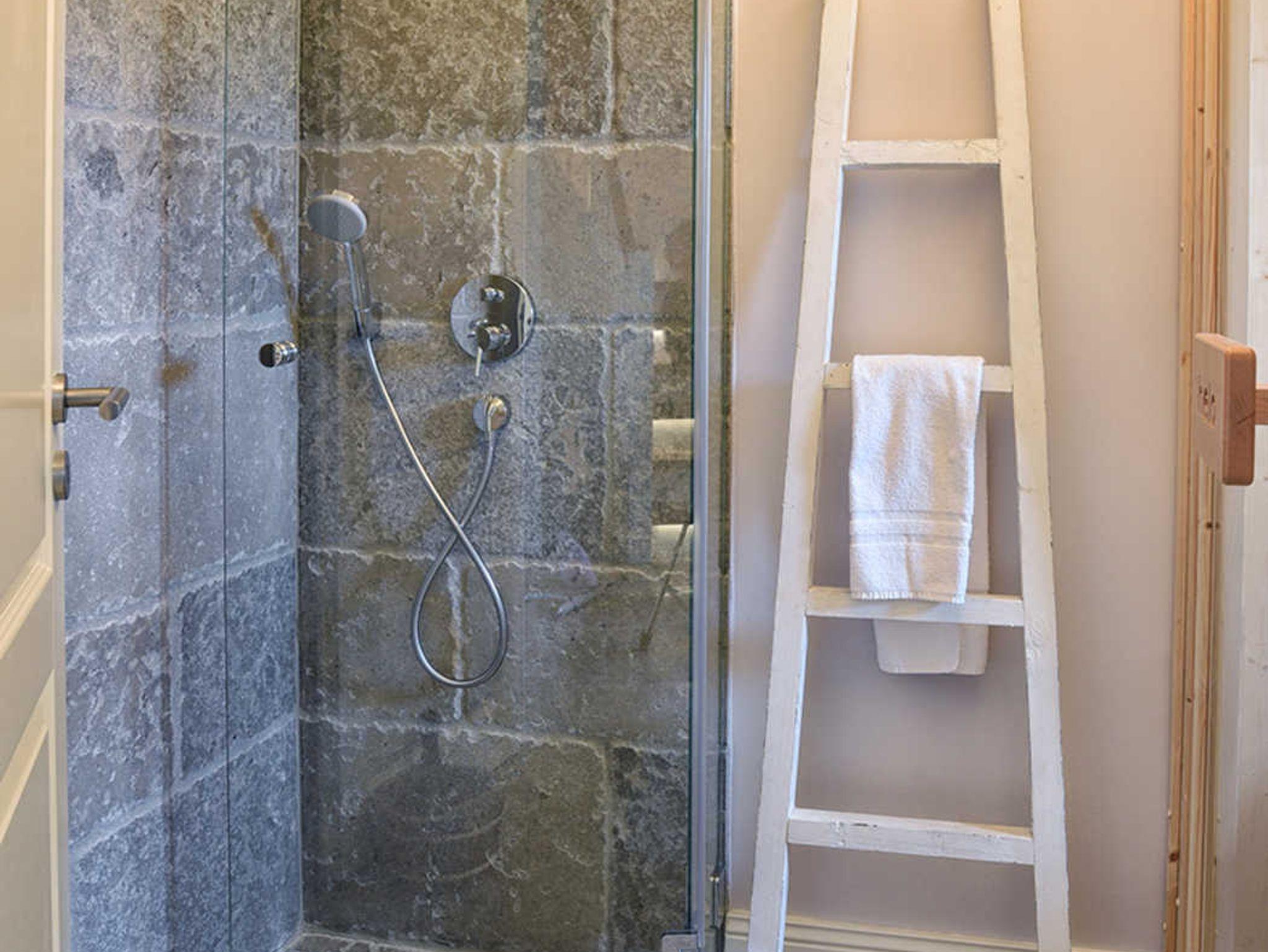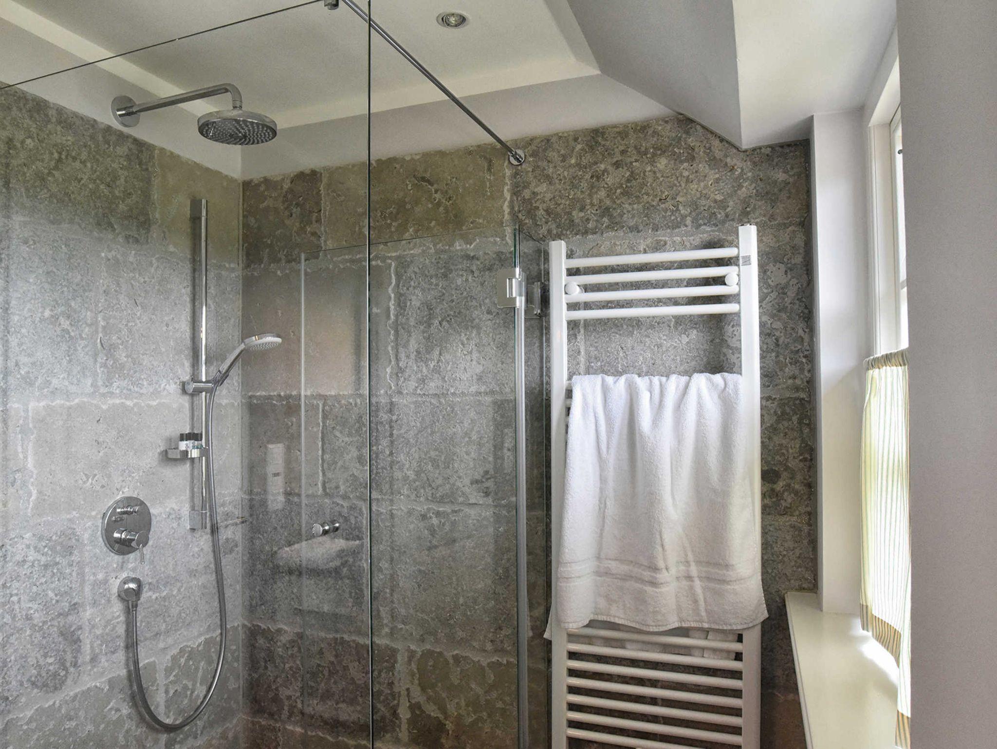 Ein Duschbad (bodeneben) und ein Wannenbad bieten genügend Platz für alle Gäste.