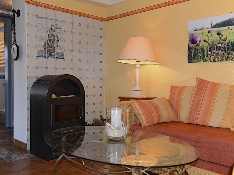 Charmante Ferienwohnung unterm Reetdach in Oevenum mit Garten, Terrasse und gemütlichem Bollerofen für entspannte Urlaubstage.