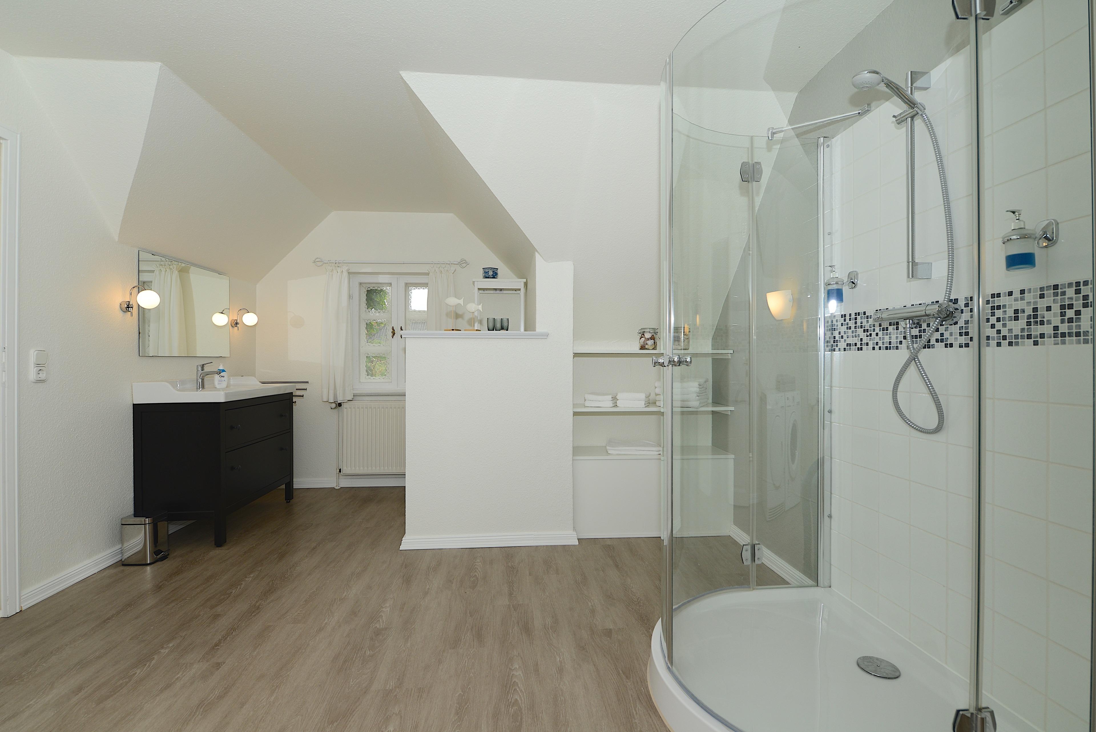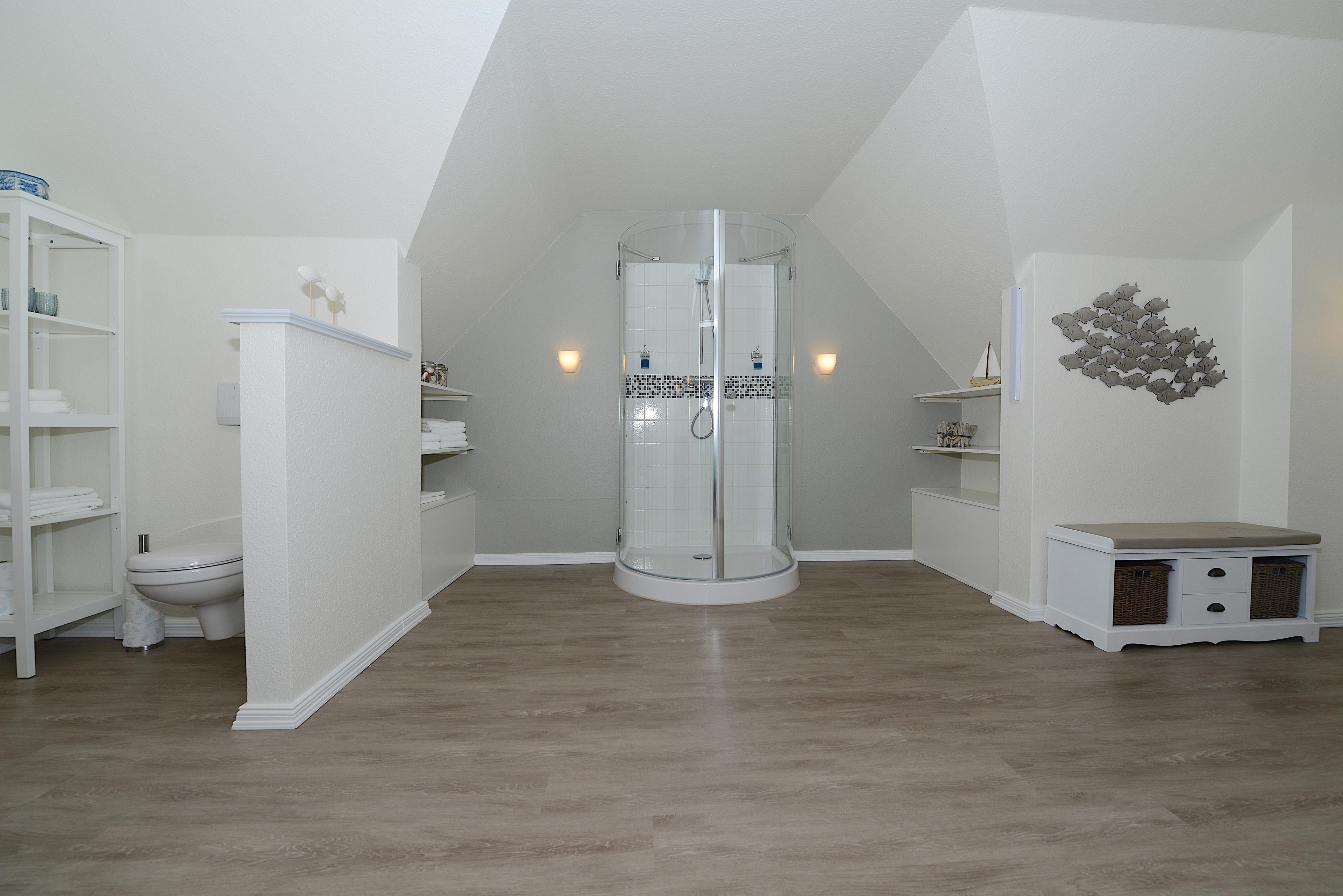 Ihr Fahrrad oder PKW parken Sie sicher im Hof, der durch einen komplett eingezäunten Garten führt – perfekt für Hundebesitzer! Restaurants, Cafés, Bäcker und ein Fahrradverleih sind nur 500 m entfernt. Der Strand, der Hafen und das Ortszentrum von Wyk sind nur 3 km entfernt, und auch der Golfplatz sowie der Flughafen sind in nur 4 km erreichbar.