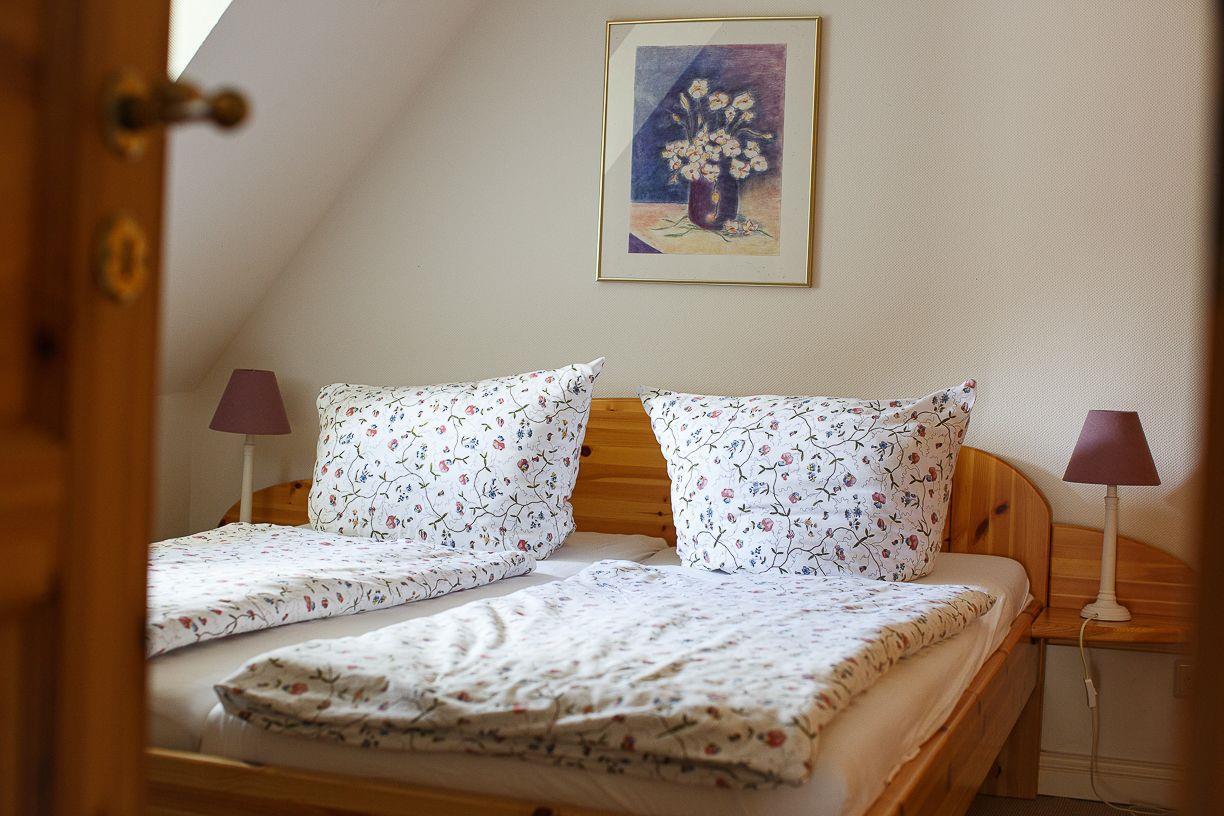 Unsere Vogelkoje erwartet Sie im ersten Obergeschoß eines urigen Friesenhaues mit einem Garten im Dorfkern von Oevenum.