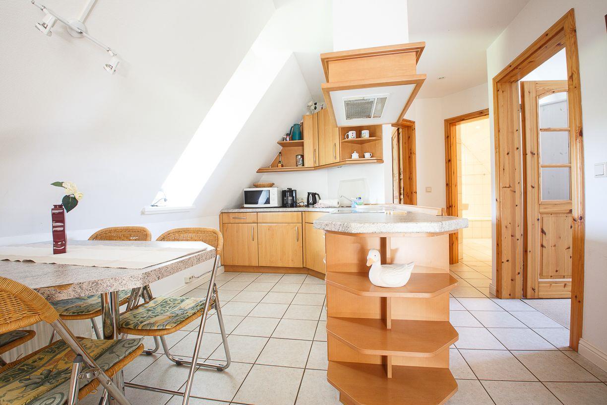 Herzstück der Wohnung ist die offene, moderne Küche auf der Galerie. Sie ist komplet ausgestattet . Kochen Sie gemeinsam und verbringen Sie einen angenehmen Abend.