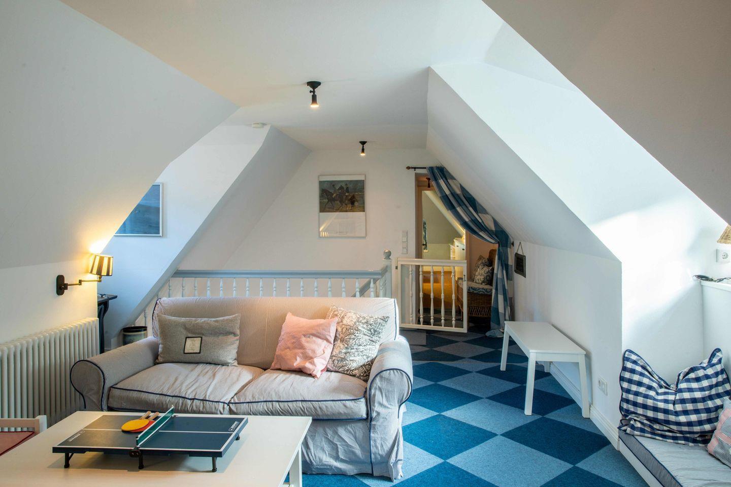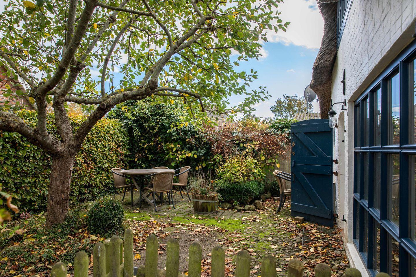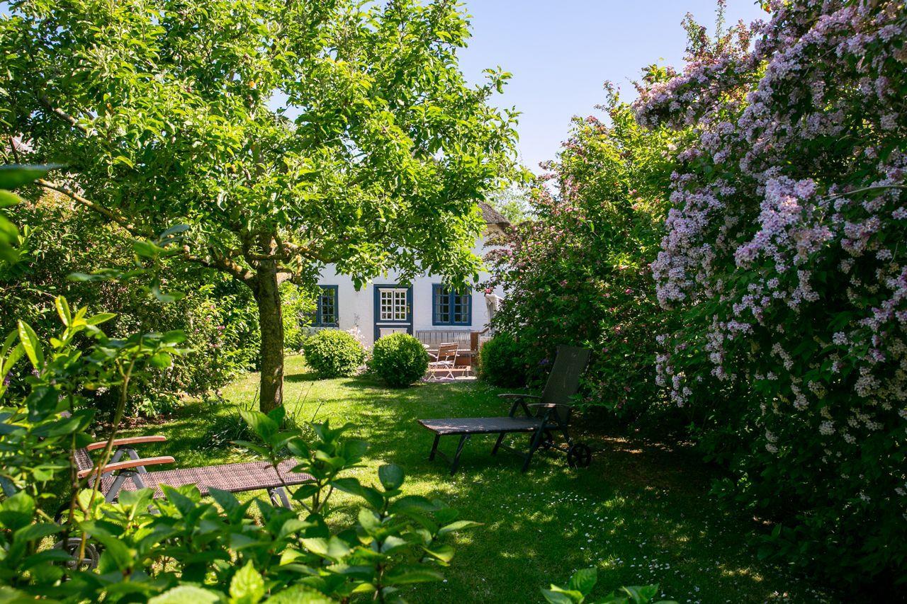 Dieses historische, reetgedeckte Friesenhaus haben Sie allein. Es liegt mitten im Herzen von Oevenum und ist nur eine Querstraße vom sehr beliebten Wochen- oder auch Handwerkermarkt (Donnerstags in der Saison) entfernt. 200m vom Objekt entfernt befindet sich ein Bäcker. Das Wyker Stadtzentrum befindet sich nur ca. 3,5 Kilometer entfernt und lädt somit zu wunderschönen Spaziergängen oder Fahrradtouren ein. Der Strand (Nieblum ebenfalls ca. 3,5 km) ist mit dem Rad über verschlungene zauberhafte Sträßchen und Wege zu erreichen. Für die Fahrräder gibt es am Haus einen großzügigen trockenen Unterstand. Das sanierte und gepflegte Ferienhaus ist windgeschützt gelegen und verfügt über einen geschützten Wiesen- und einen verträumten Frühstücksgarten. Historischer Friesenstil trifft auf modernes Design. Versteckter Großbildschirm neben einem der zwei dänischen Ofen. Das Haus bietet in seinen 3 Schlafzimmern mit insgesamt 3 Einzelbetten, einem französischen Bett (140cm breit) und einem Doppelbett (180cm breit) sowie drei neuen Bädern Platz für die ganze Familie. Die neue Küche ist charmant in das Objekt eingebunden und lädt zu einem Frühstück drinnen oder unter dem Apfelbaum draußen und später zu einem gemütlichen Abend am Holzofen ein.