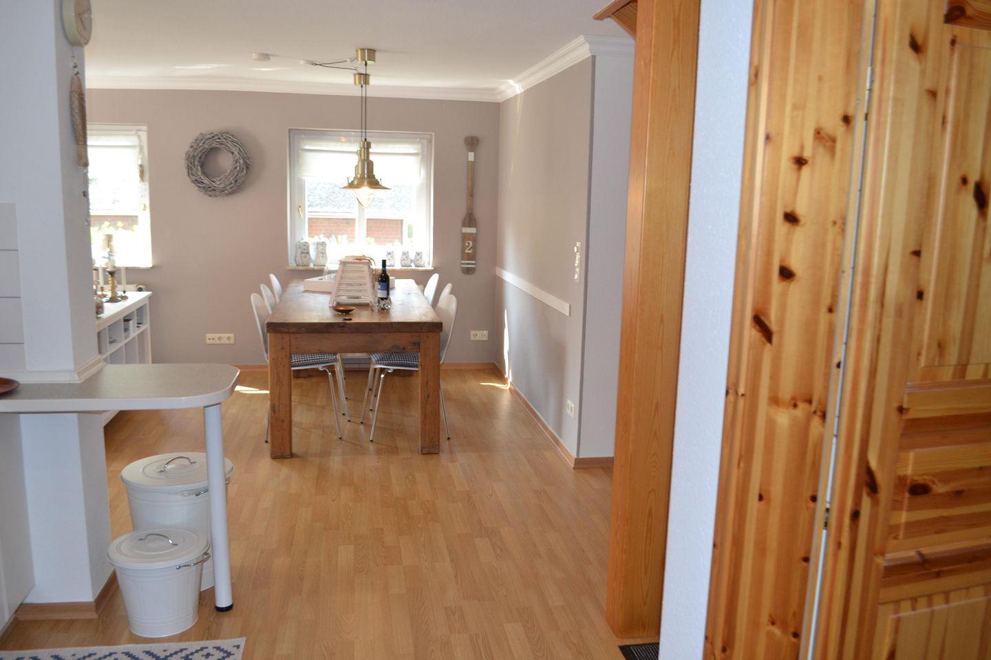 Diese Haushälfte Haus verfügt über: ein großes Wohnzimmer, offene Küche, Essecke 2 Duschbäder. zwei Schlafzimmer mit Doppelbetten, eine Schlafcouch. Zu den Annehmlichkeiten des sehr gemütlich, persönlich und geschmackvoll eingerichteten Ferienobjektes gehören u. a.: Sat-TV, Stereoanlage mit CD-Player, Geschirrspüler, Bügeleisen, -Brett. Herzlich willkommen zu einem erholsamen Urlaub auf der grünen Insel Föhr! Kaution mit Hund 100,00 Euro.
