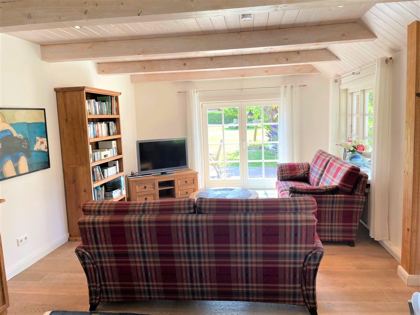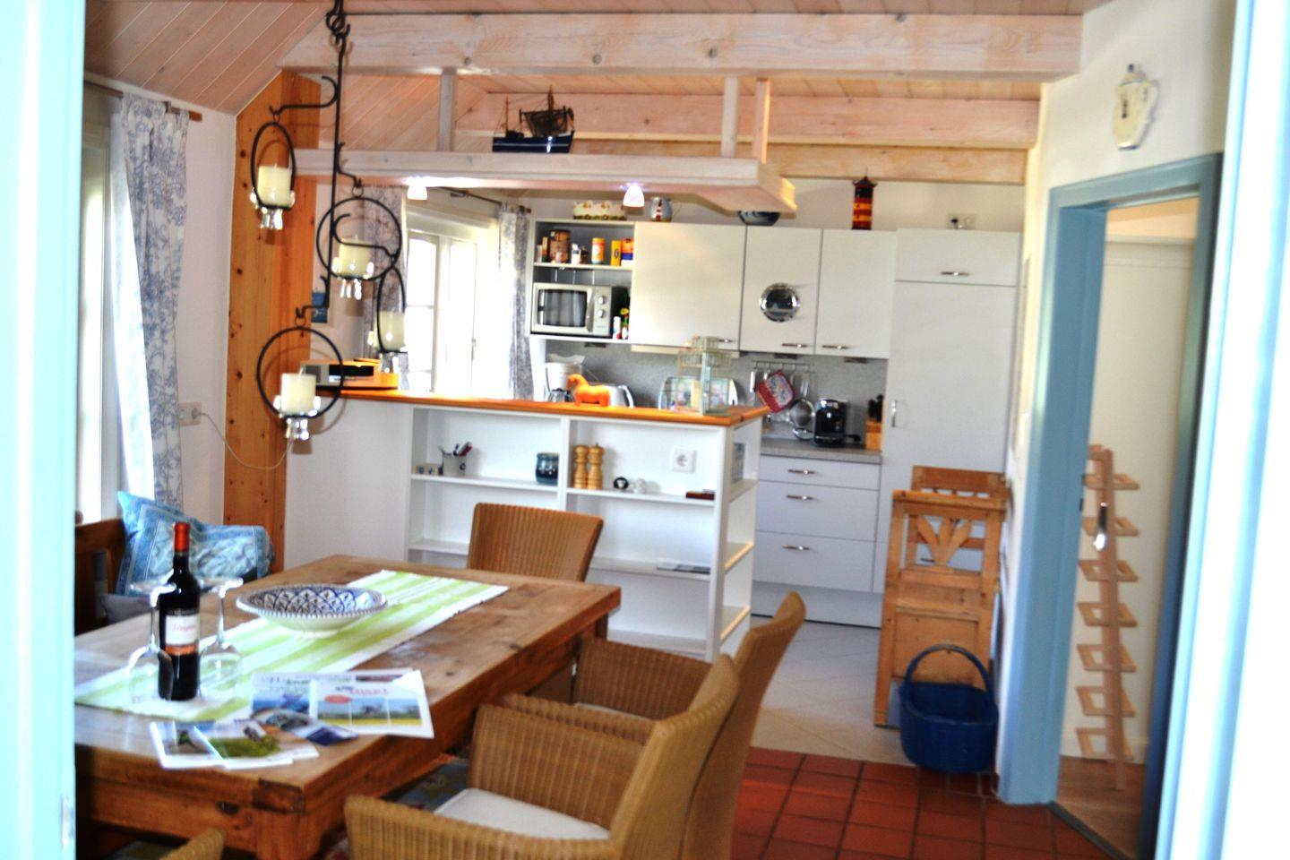 Zu den Annehmlichkeiten des sehr gemütlich, persönlich und geschmackvoll eingerichteten Ferienobjektes gehören u. a.: Sat-TV, Stereoanlage mit CD-Player, Telefon, Geschirrspüler, Bügeleisen, -brett, Gitterbett für Kleinkinder und Gesellschaftsspiele. In der Garage befindet sich die Waschmaschine und der Trockner.