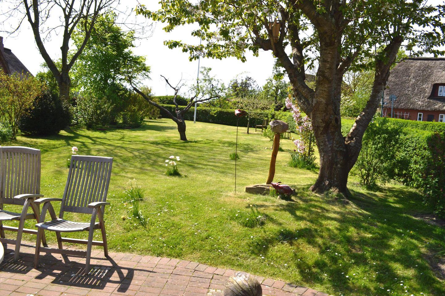 Freistehendes Friesenhaus mit großem Garten in ruhigem Inseldorf Oevenum auf Föhr, ideal für Familien und erholsamen Urlaub.
