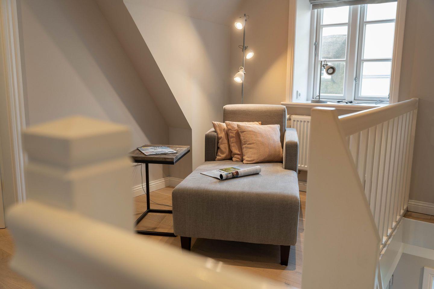 Das reetgedeckte Ferienhaus Lütte Hüs auf Föhr bietet mit Garten, Terrasse und Original Mylin-Kachelofen entspannte Urlaubstage.