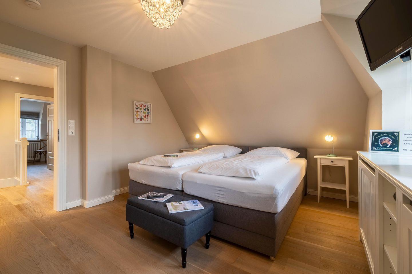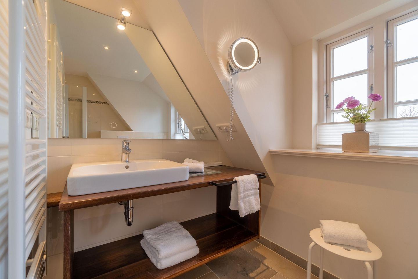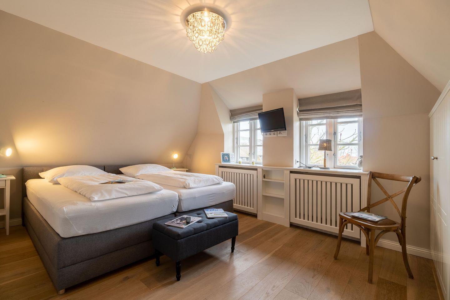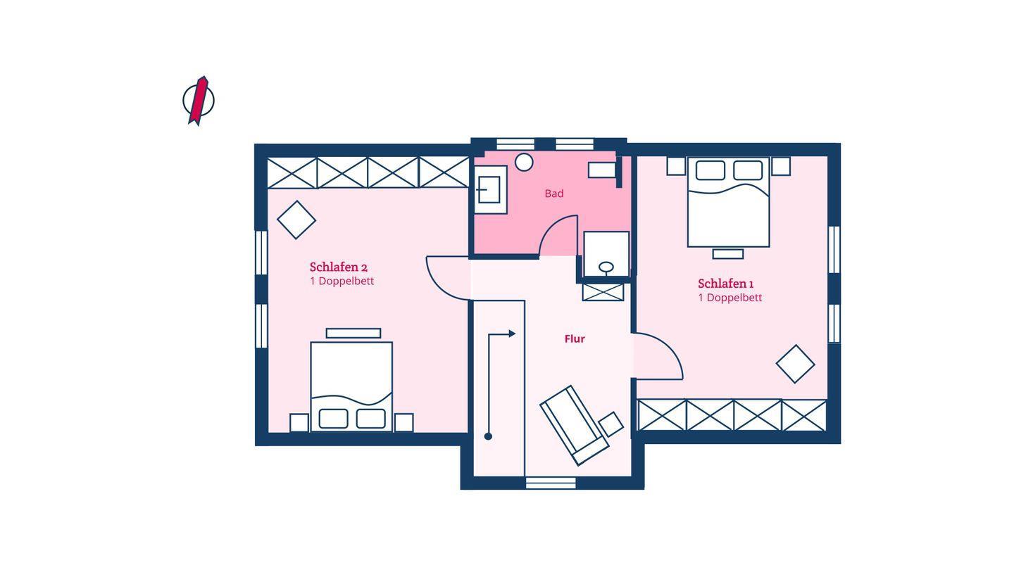 Das reetgedeckte Ferienhaus Lütte Hüs verfügt über 2 Schlafzimmer und 2 Bäder und bietet somit komfortabel Platz für bis zu 4 Personen zuzüglich einer Kleinkinderaufbettung.