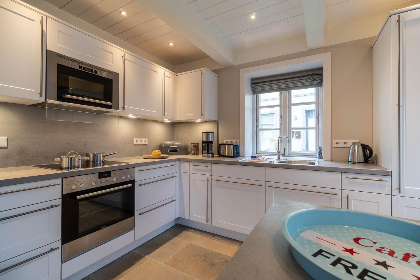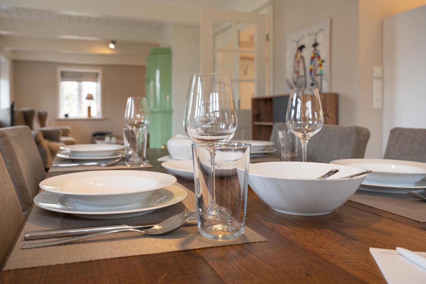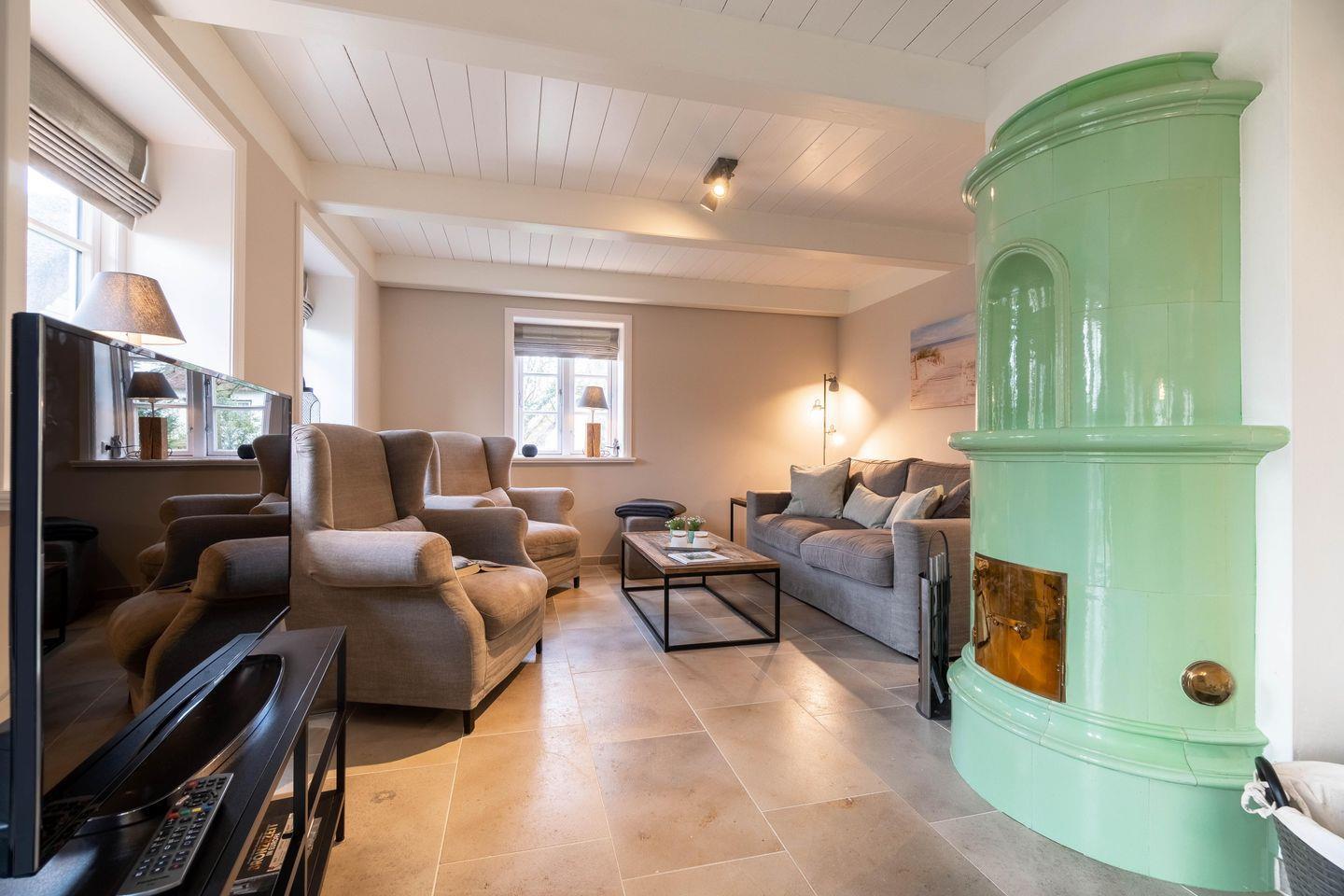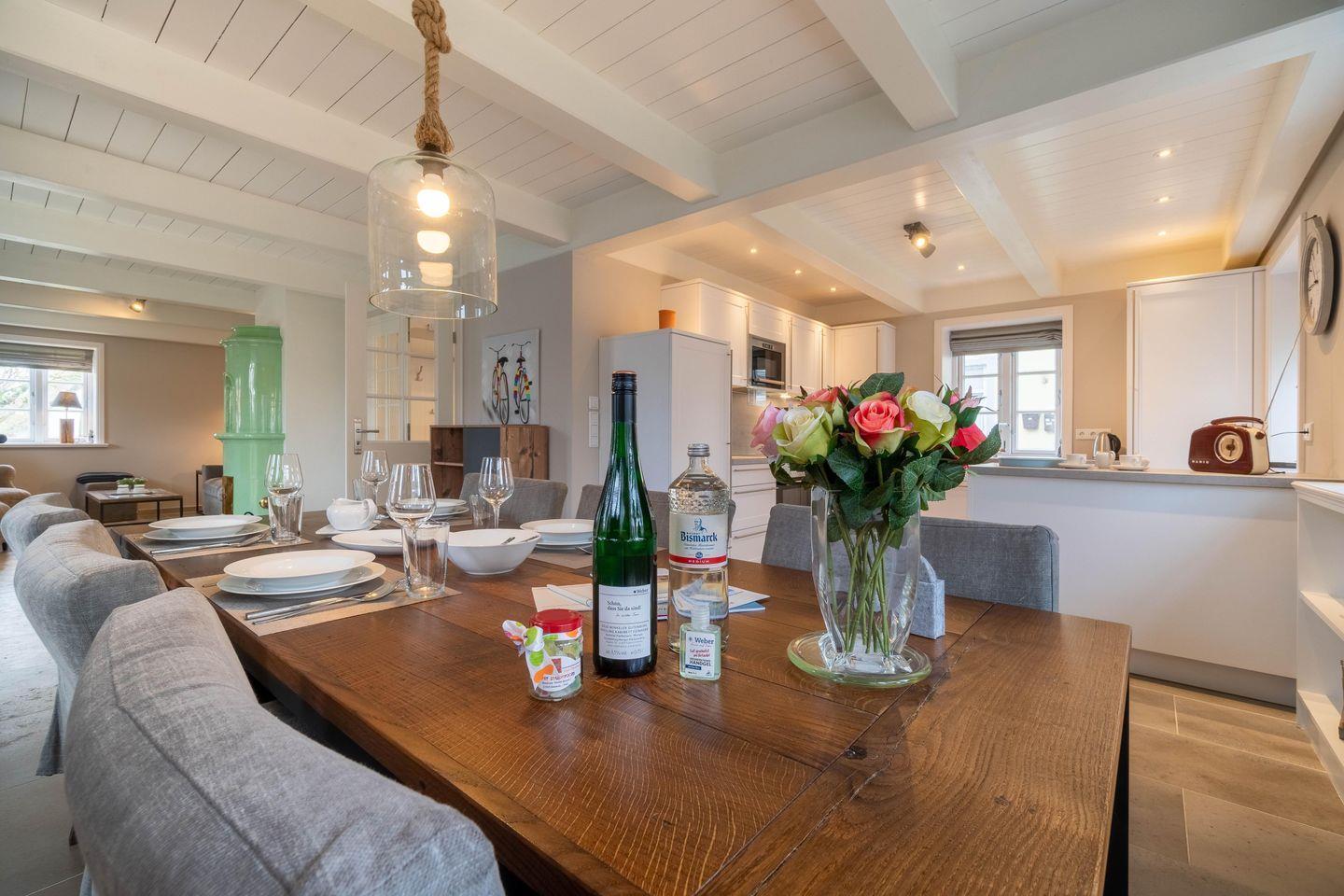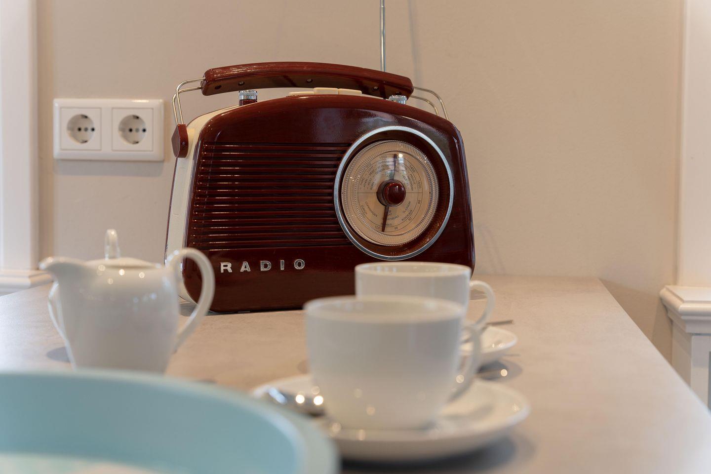 Zu den Highlights der Ferienunterkunft zählen wir u. a. den Original Mylin-Kachelofen, die ansprechende Ausstattung und den Garten mit Terrasse und Strandkorb.