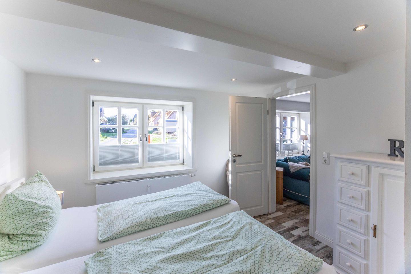 Wohnen Sie ruhig und lernen das schöne Inseldorf Oevenum kennen. Die Ferienwohnung liegt mitten im Herzen von Oevenum und ist nur wenige Meter vom beliebten Wochen- oder auch Handwerkermarkt (Donnerstags in der Saison) entfernt. Ca. 300m vom Objekt entfernt befindet sich der Bäcker. Die Ferienwohnung Töwerland 1 wurde zu Beginn des Jahres 2022 aufwendig renoviert- und das Ergebnis kann sich sehen lassen! Zwei Personen und ein kleiner Hund sind herzlich Willkommen. Die offene und gut ausgestattete Küche mit einem Thermomix lädt auch im Urlaub zum Kochen ein. Es erwartet Sie ein offener Wohn-Ess-Küchenbereich, ein neues Duschbad und ein gemütliches Schlafzimmer mit Doppelbett (180*200). Hinter dem Haus im Garten (die Terrasse liegt nicht an der Wohnung, sondern ist über das Grundstück erreichbar) haben Sie eine eigene, eingezäunte kleine Terrasse. Die Ferienwohnung befindet sich im Erdgeschoss. Oben drüber in der 1. Etage liegt die Ferienwohnung Töwerland 2. Hier gibt es Platz für bis zu 3 Personen und einen kleinen Hund. Ein gemeinsamer Familienurlaub, bei dem sich dennoch jede Familie für sich zurückziehen kann, ist sehr gut möglich.
