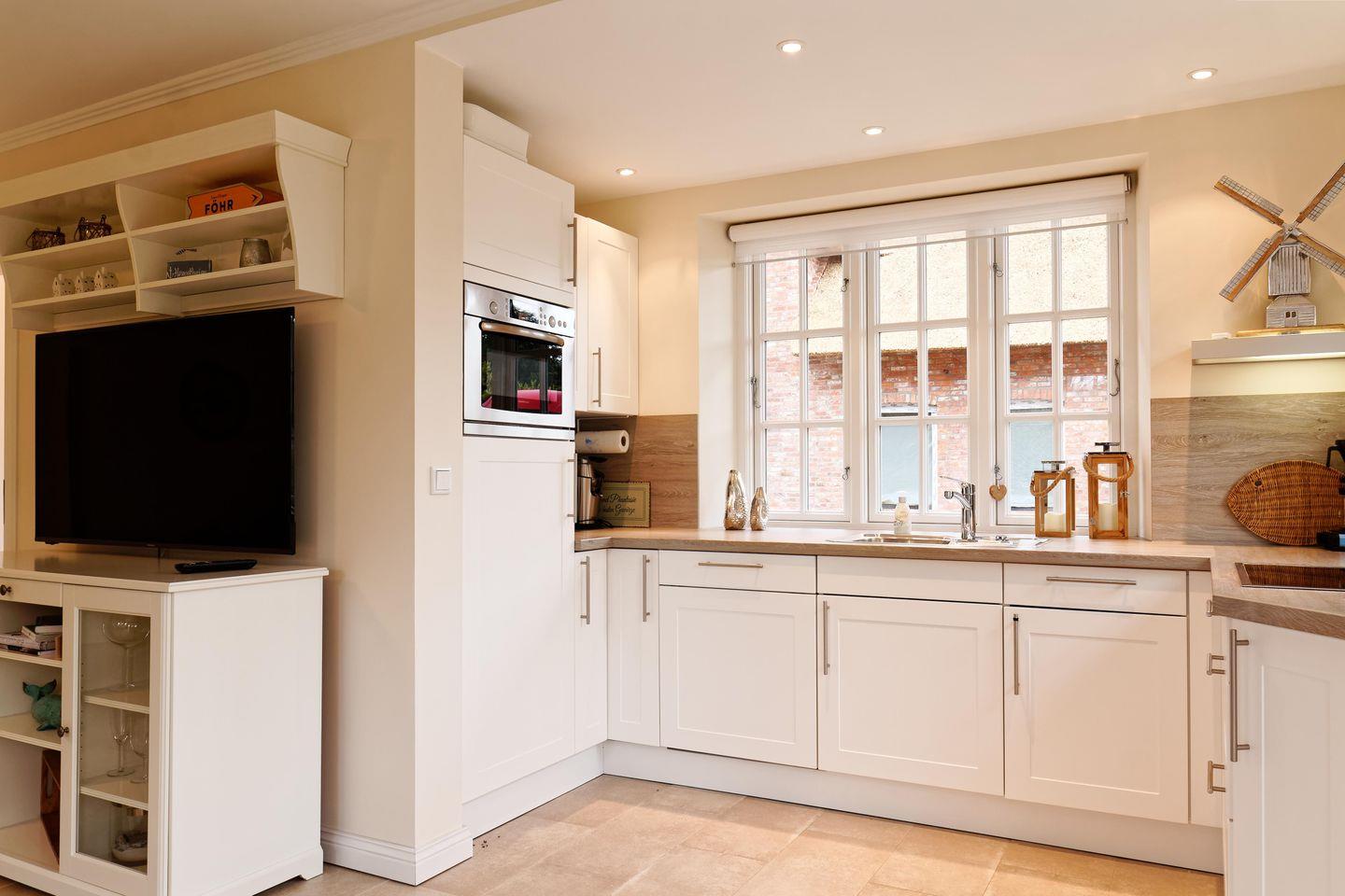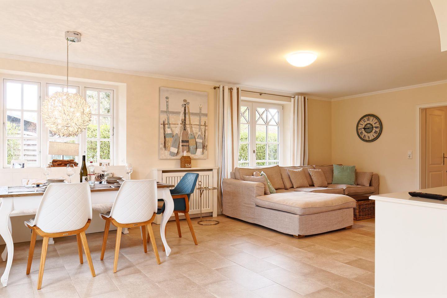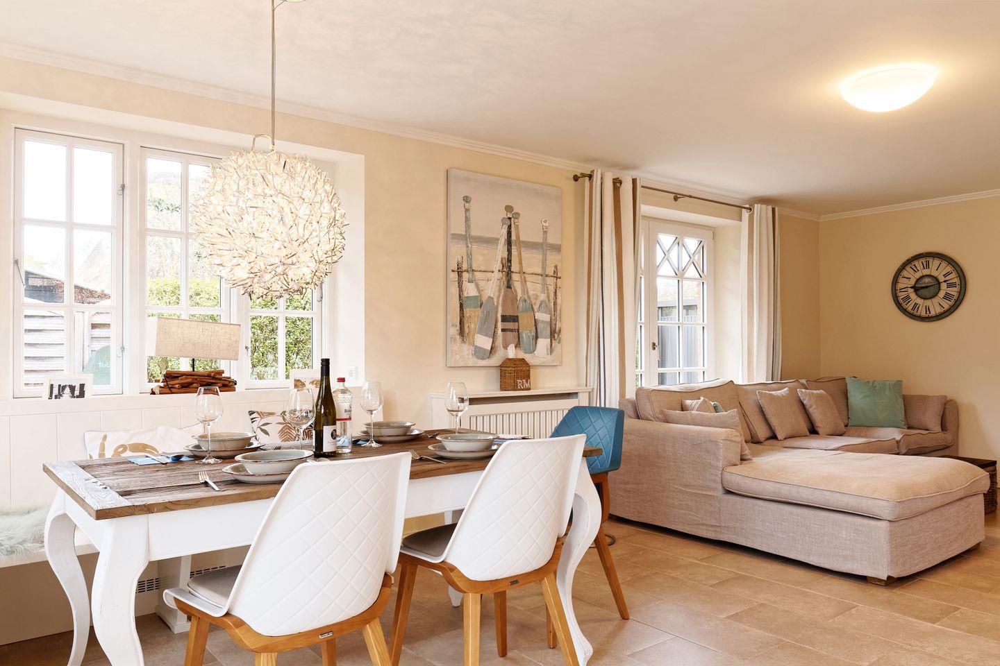 Das reetgedeckte Ferienhaus Dorftraum verfügt über 2 Schlafzimmer und 2 Bäder und bietet somit komfortabel Platz für bis zu 4 Personen zuzüglich einer Kleinkinderaufbettung.